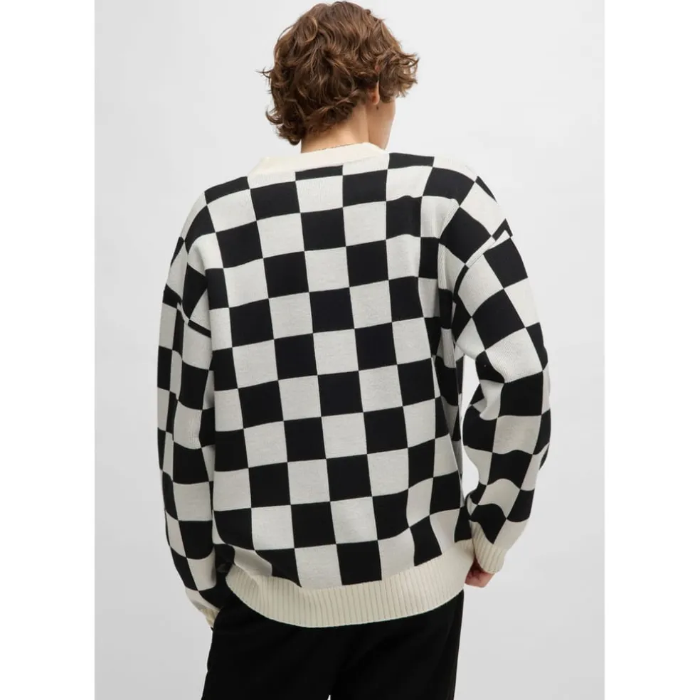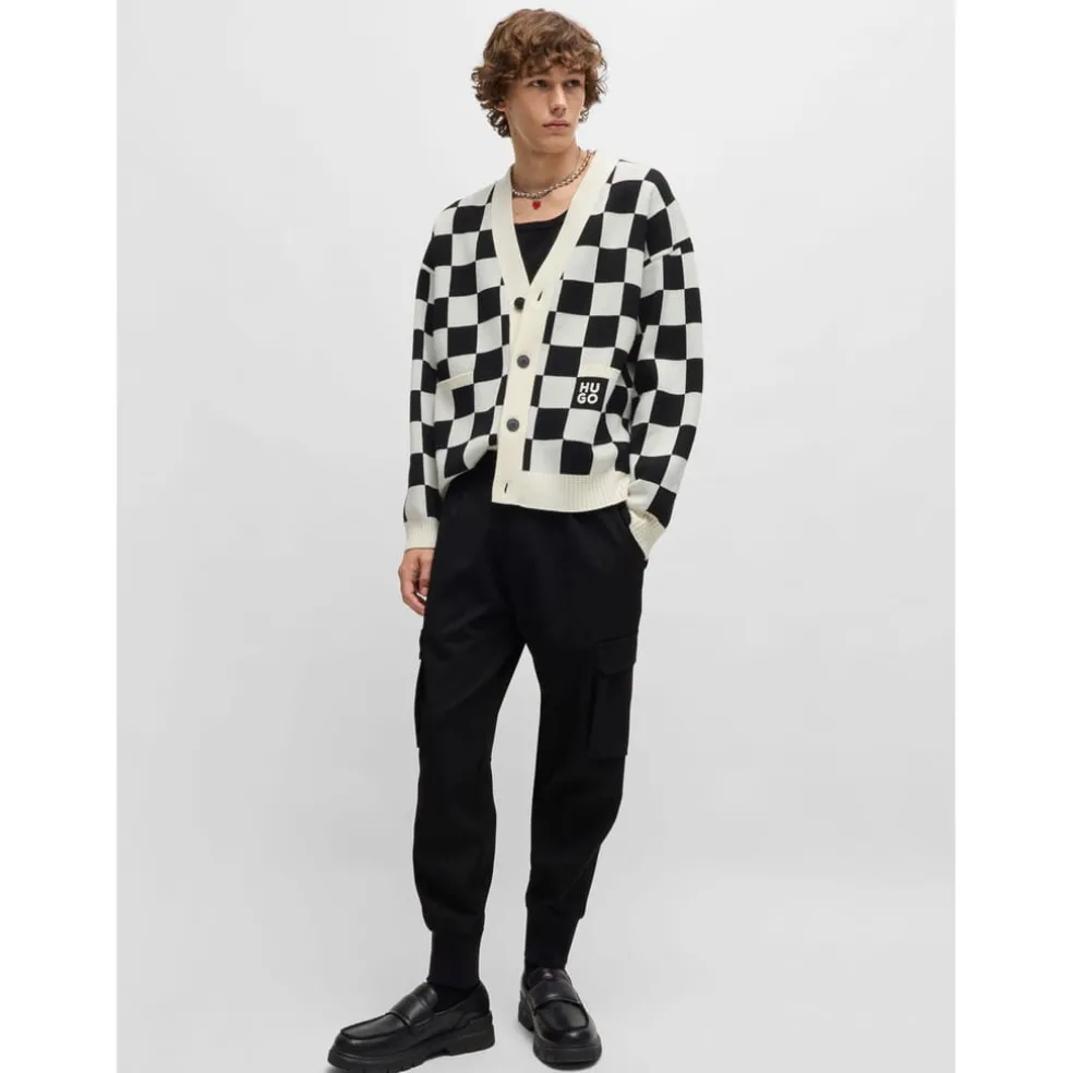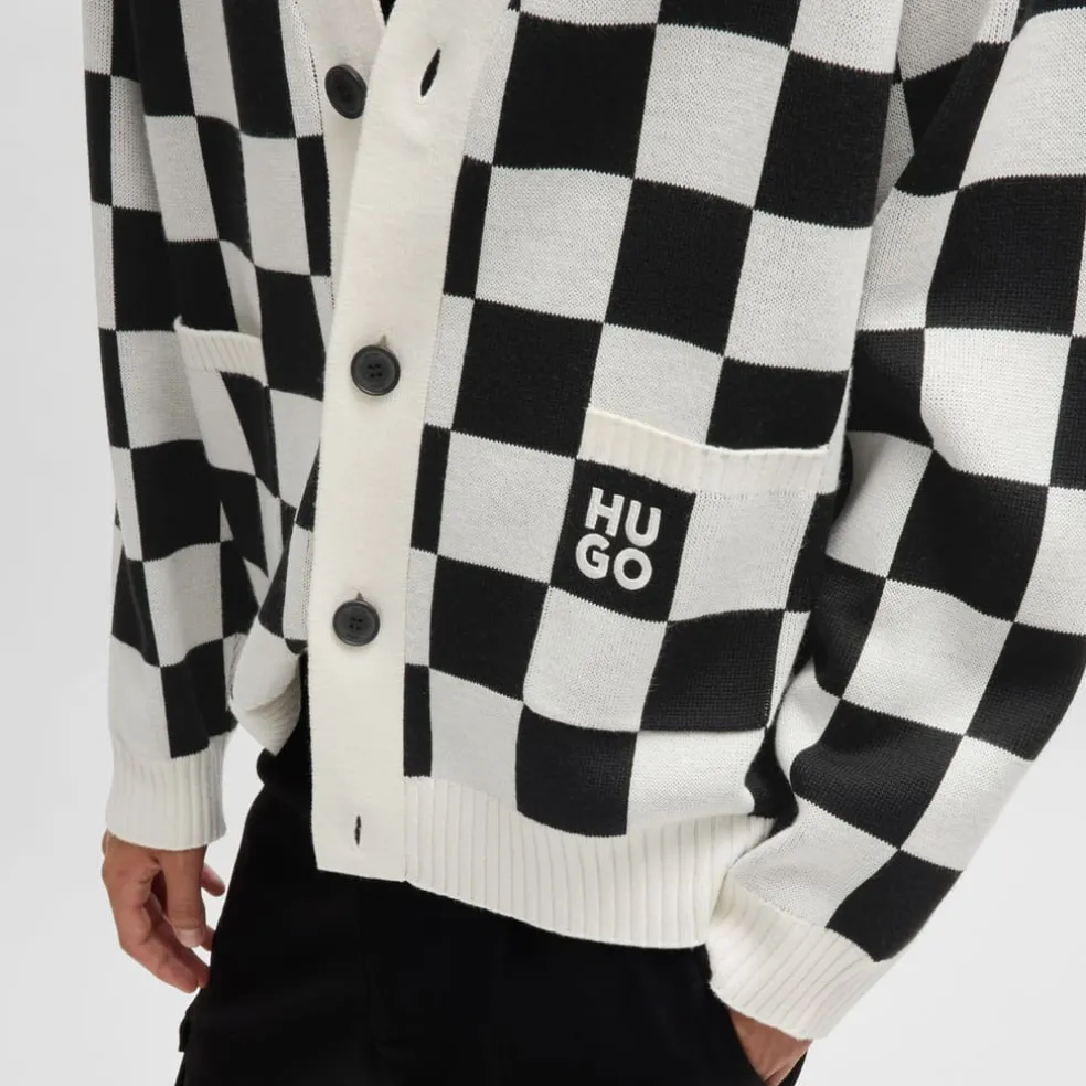 With logo embroidery punctuating the motorsport-inspired check, this HUGO Menswear cardigan is blended with soft wool.