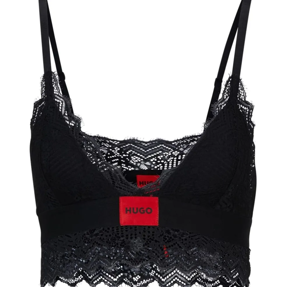 Rejuvenate your underwear with this elegant and flirty Lace Triangle Bralette from Hugo. Crafted from 85% polyamide and 15% elastane this bralette comes in a v neck construction, with adjustable straps for a adaptable and comforting fit. With an elasticated hemline allowing for a more stretchy fit, the bra cups are padded with sheer for additional comfort and support. The look is finished in a solid black elegant laced design, which offers a stylish and feminine look. The iconic brand label is stitched into a patch on the front which gives a deluxe finish to the bra.