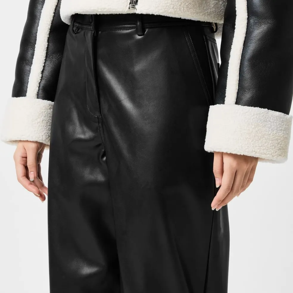 Jack Wills Faux Leather Straight Leg Trousers in Black