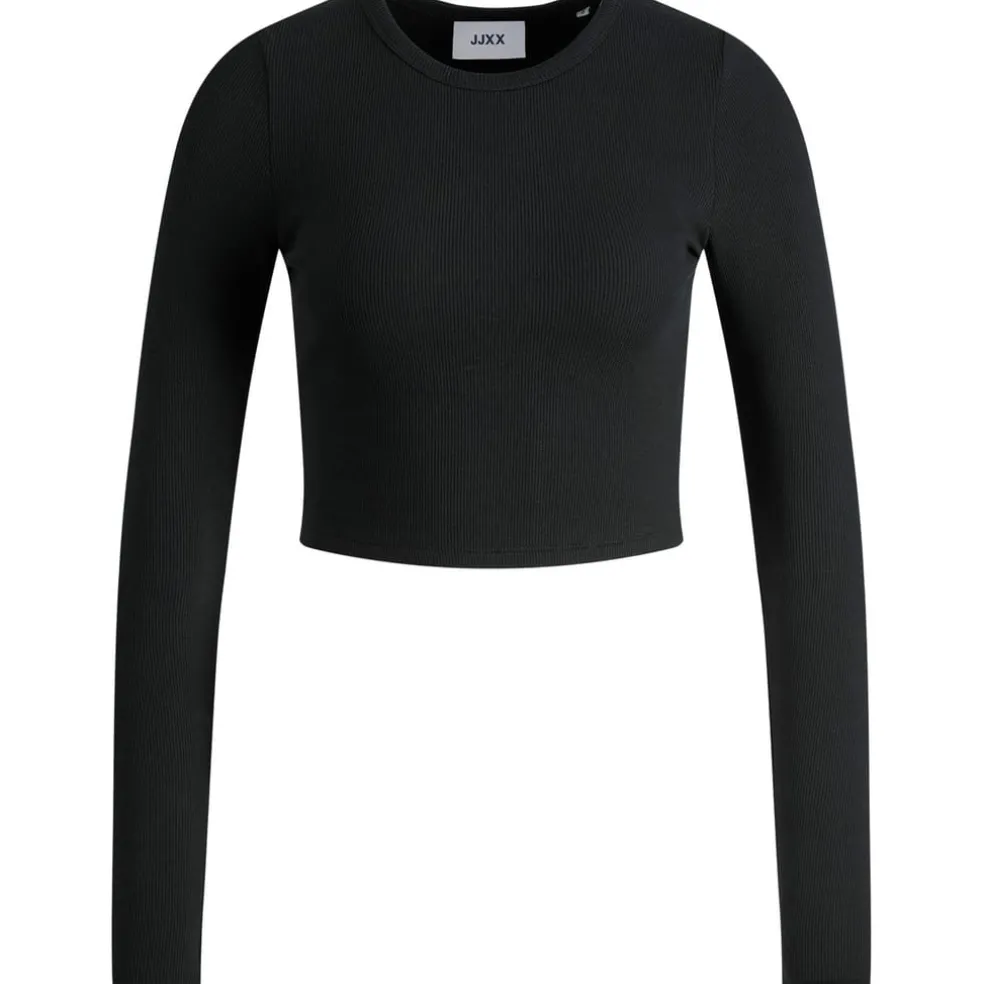 Discover the JJXX cropped t-shirt, designed for casual wear. Featuring a ribbed pattern with long sleeves and a classic crew neck, this top brings a modern twist to your wardrobe. The ribbed collar adds a touch of texture, making it a versatile piece for any occasion.