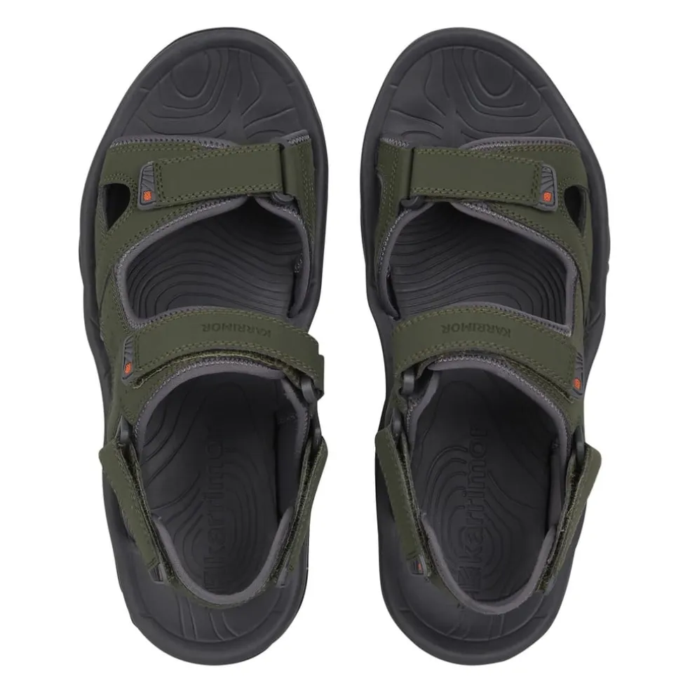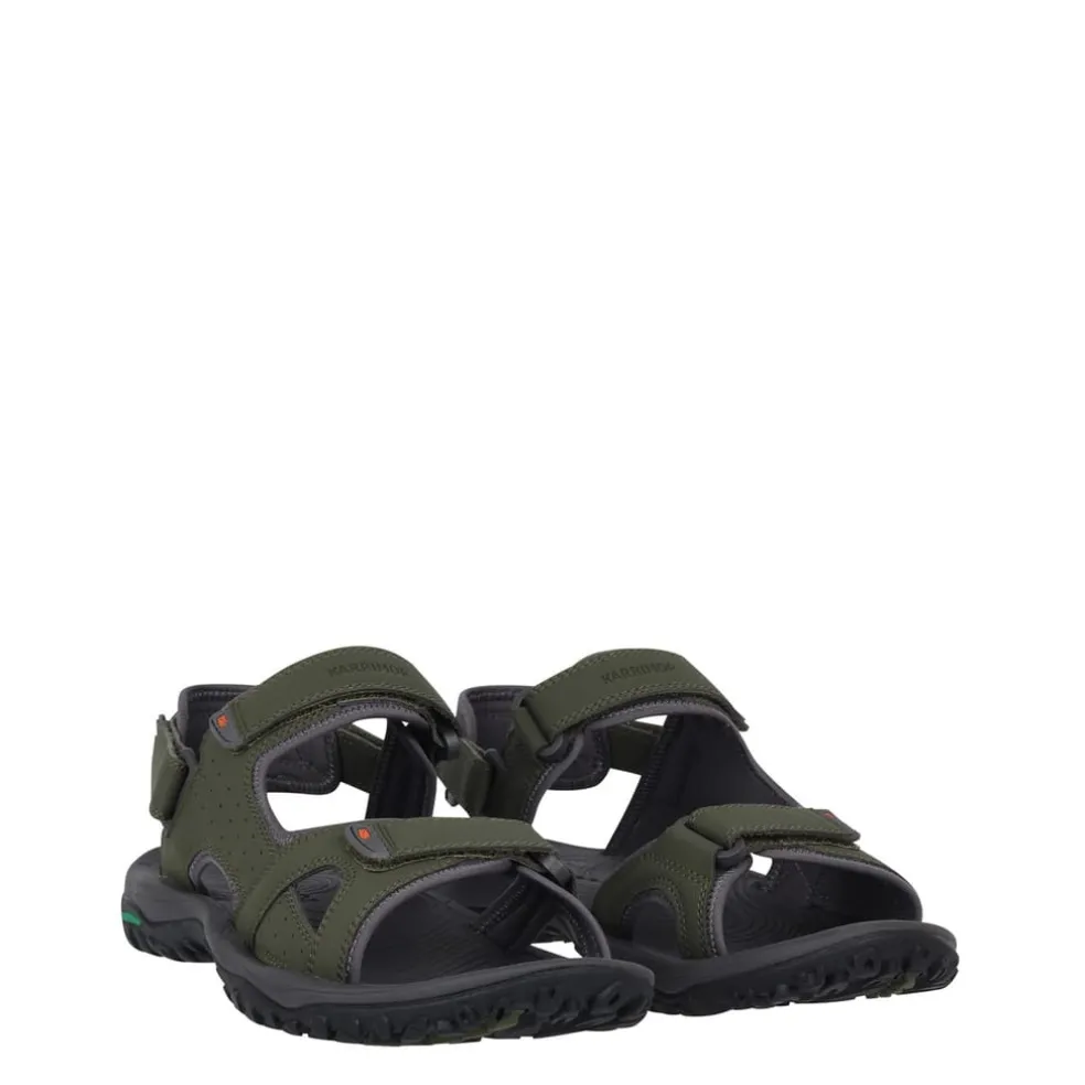 – Ideal for everyday wear these Mens Karrimor Sandals feature four hook and loop fasteners for an adjustable, secure fit. Padded straps and a textured inner for comfort. The moulded outsole with Dynagrip offers excellent grip. A removable heel strap gives you the option to wear as a slip on sandal. All complete with the Karrimor branding.