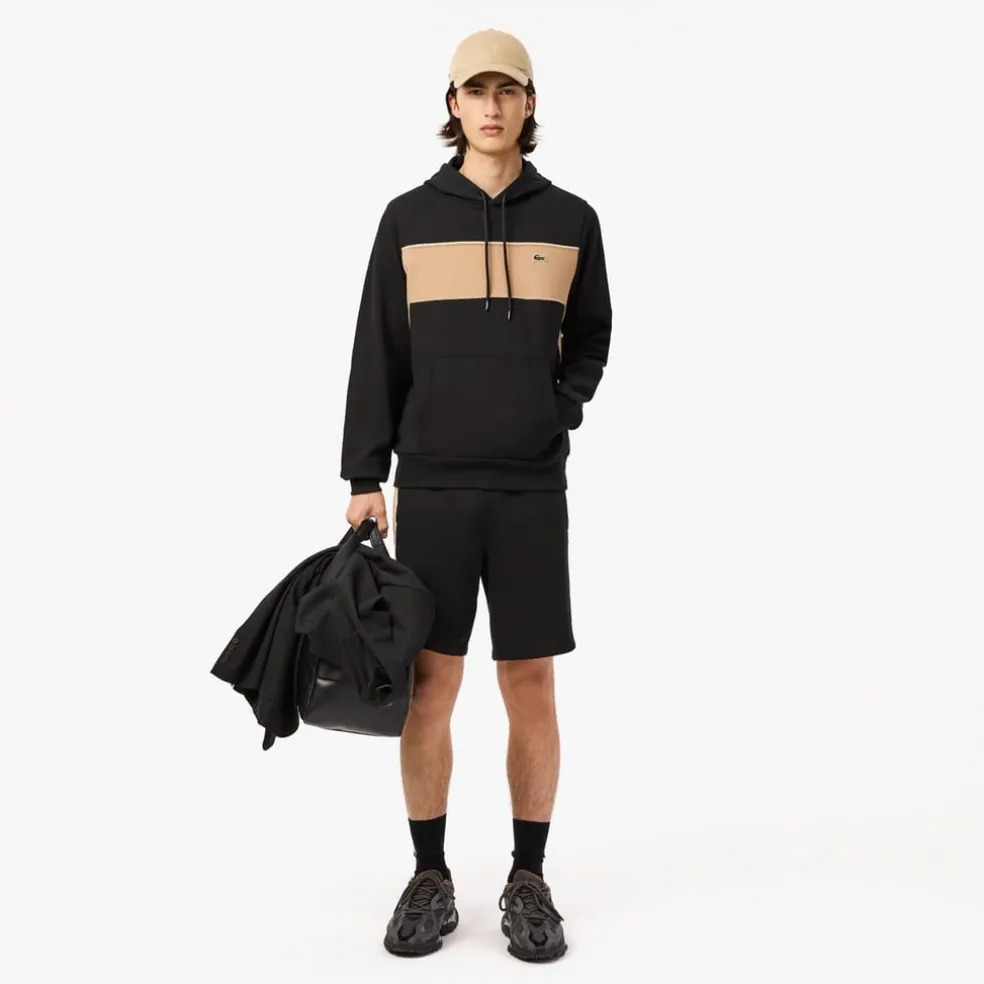 Lacoste Colour-Block Fleece Hoodie in Black