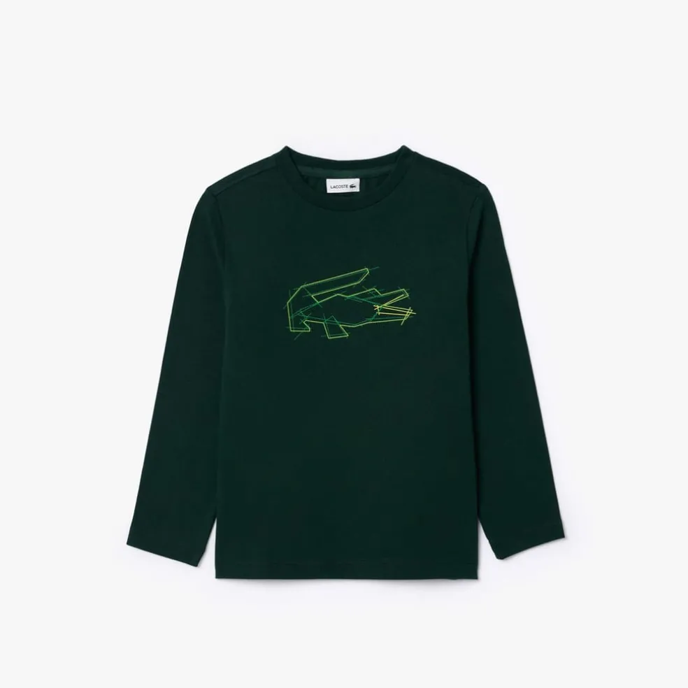 Lacoste Juniors Heavy Cotton Crocodile Graphic T-Shirt in Green