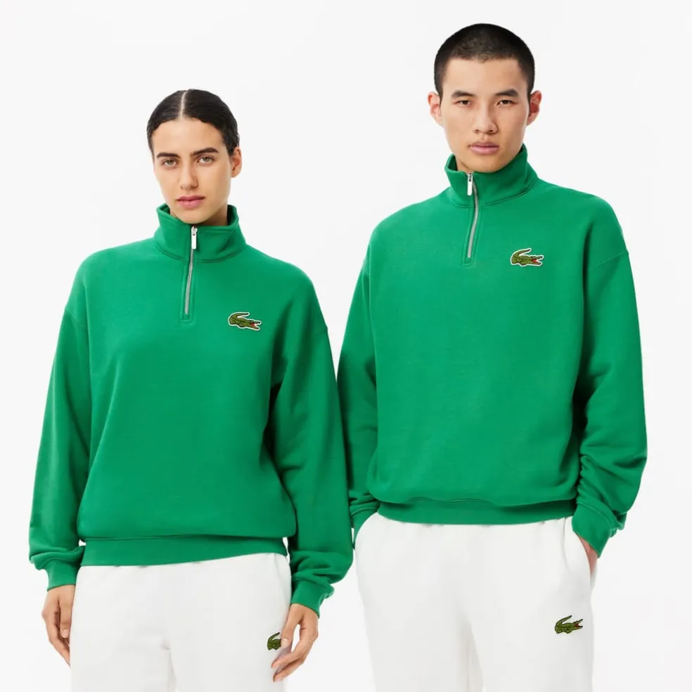 Lacoste Loose Fit Zip Neck Badge Accent Sweatshirt in Green