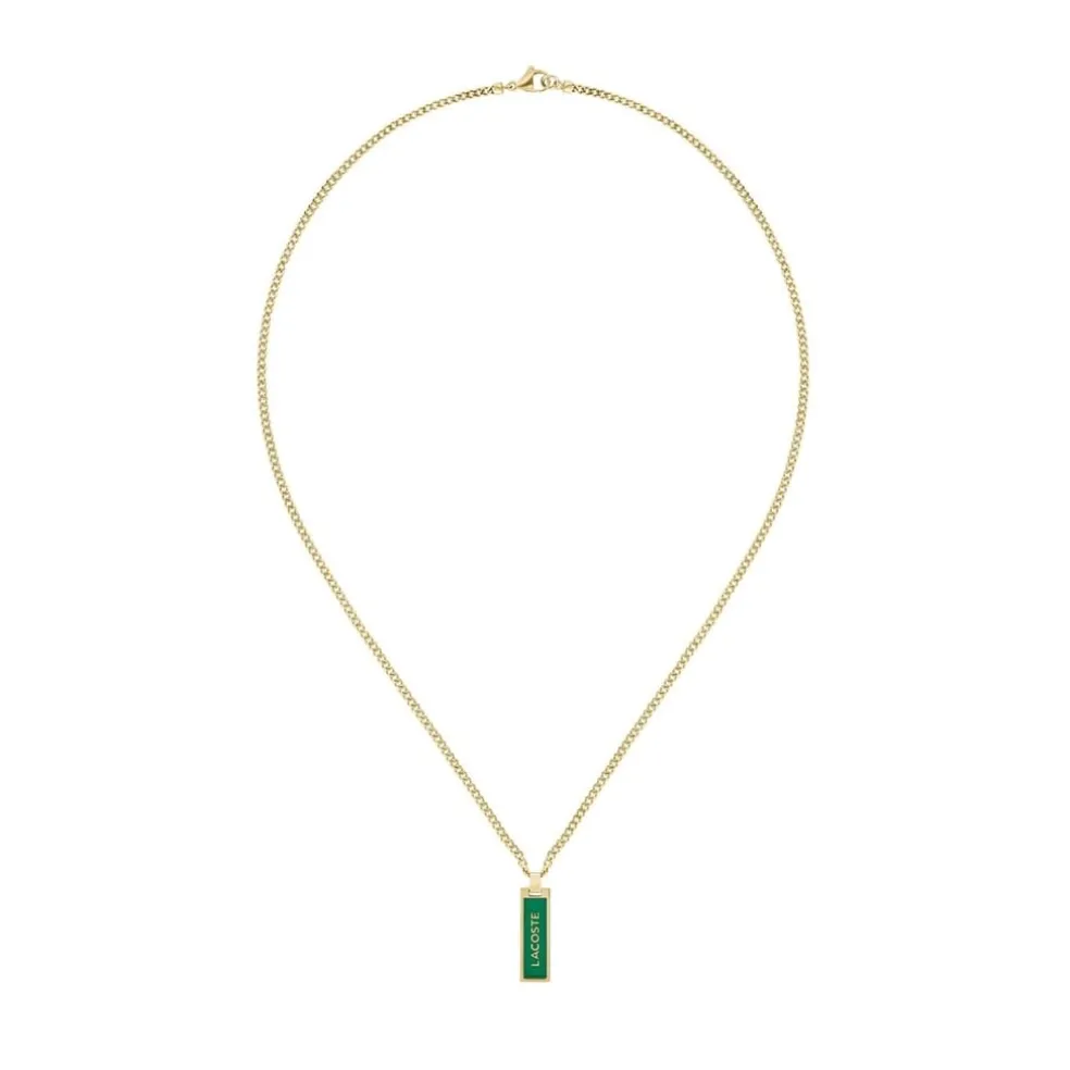 Lacoste Men’s Fence Yellow Gold IP with Green Colored Enamel Necklace.