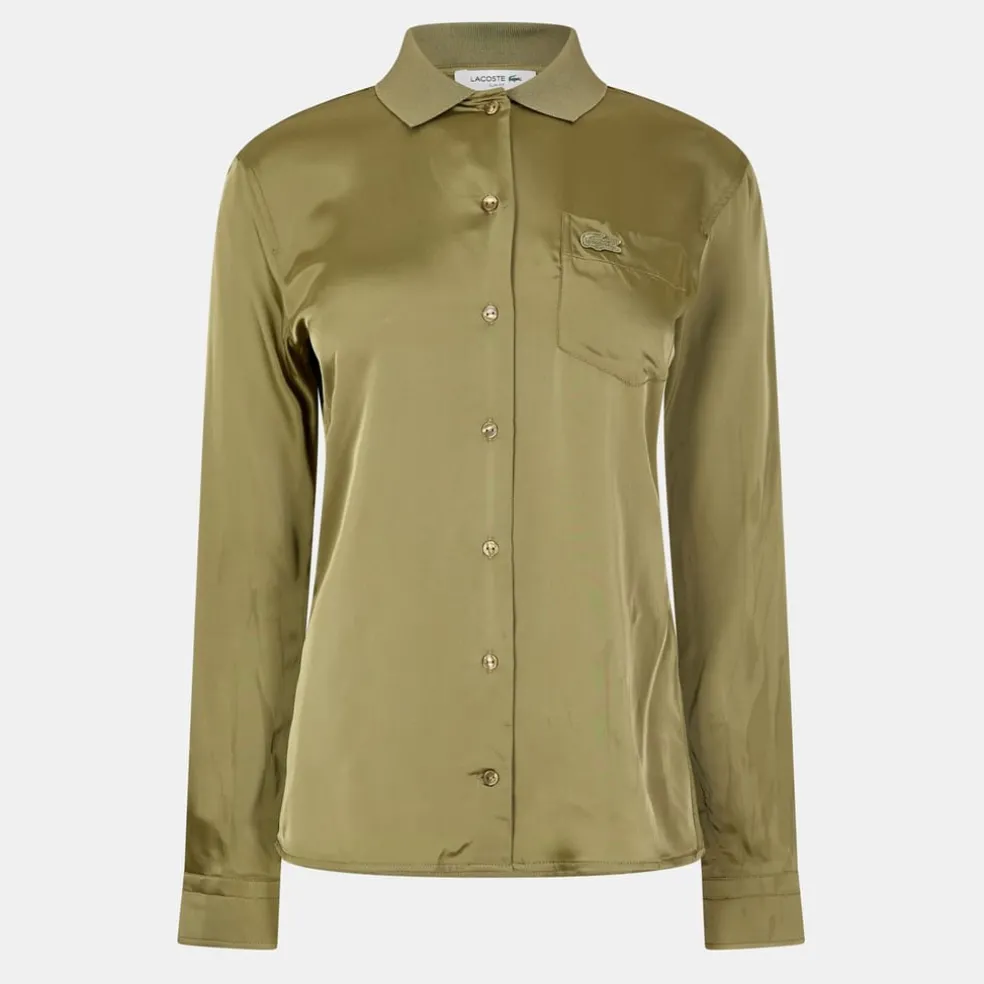 This Lacoste top features a classic shirt collar and a button-down closure, offering a regular fit. The long sleeves and solid pattern provide a timeless look. Embellished with a logo and a chest pocket, this top combines style and functionality.