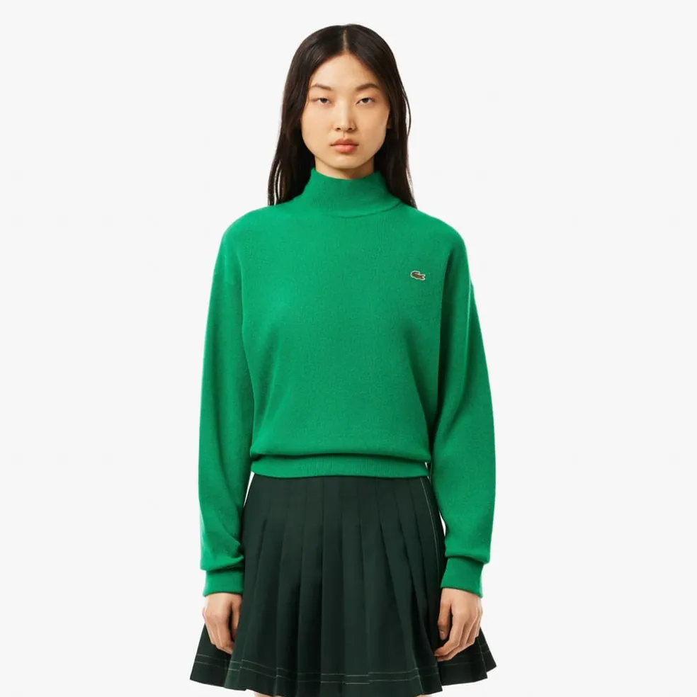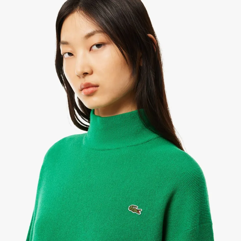 This high neck sweater, a Lacoste wardrobe essential, is the fruit of 90 years of knitwear expertise. Made from warm, heat-regulating wool with a classic moss stitch, creating a soft feel and a retro, heritage feel. Plus ribbed finish details and cuffed sleeves for a timeless, elegant look.
