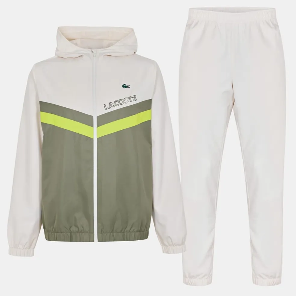 – Striped detailing on the front of the jacket and down each leg of the trousers adds a sporty finish.
