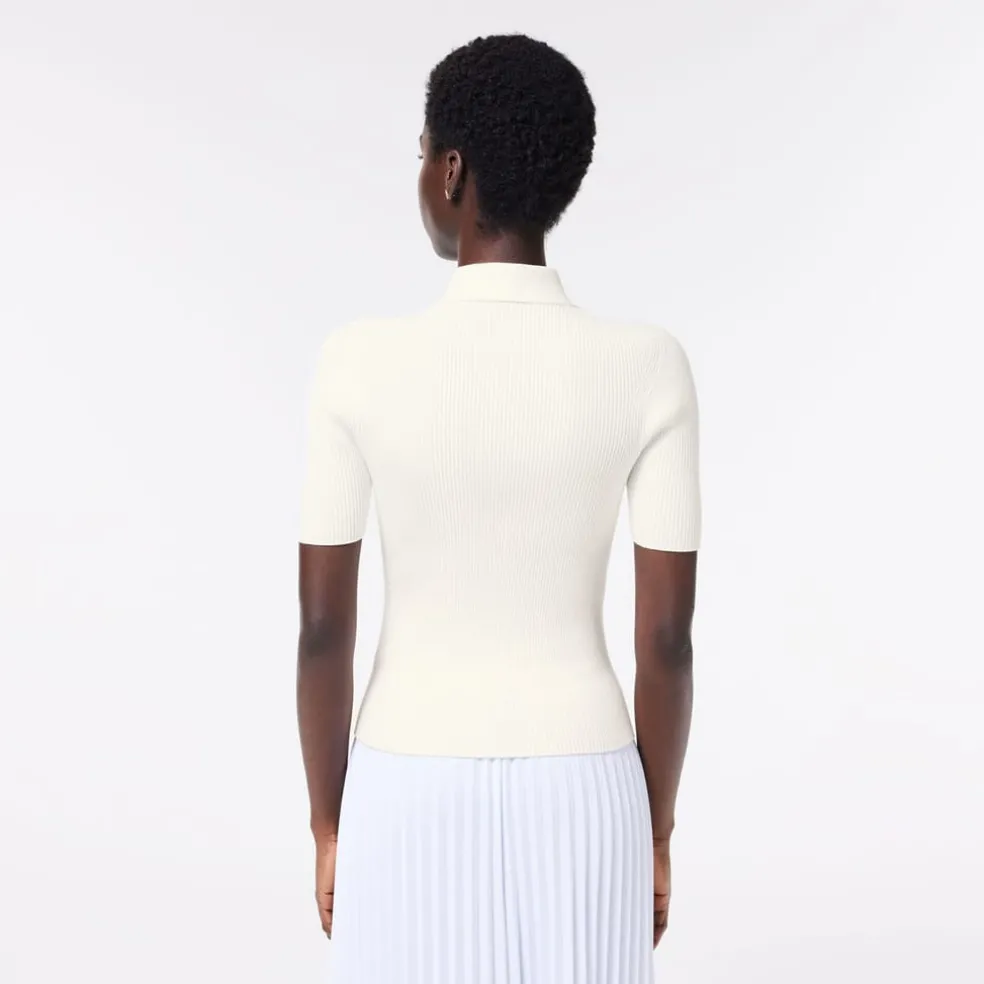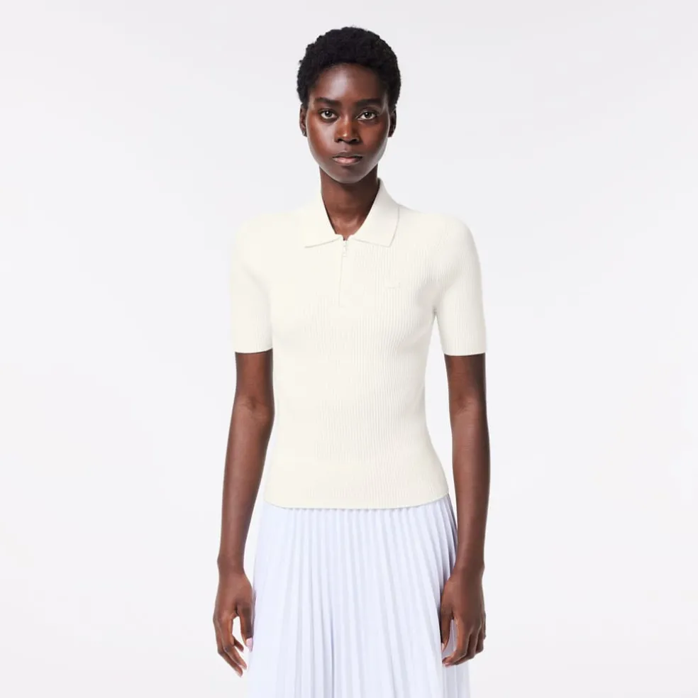 An innovative, feminine take on the Lacoste polo shirt. Designed using cutting-edge 3D knit technology, the seamless ribbed knit fits perfectly to the body, leaving you free to move. Sophisticated details, such as the zipped neck, add an elegant twist to this comfortable design.