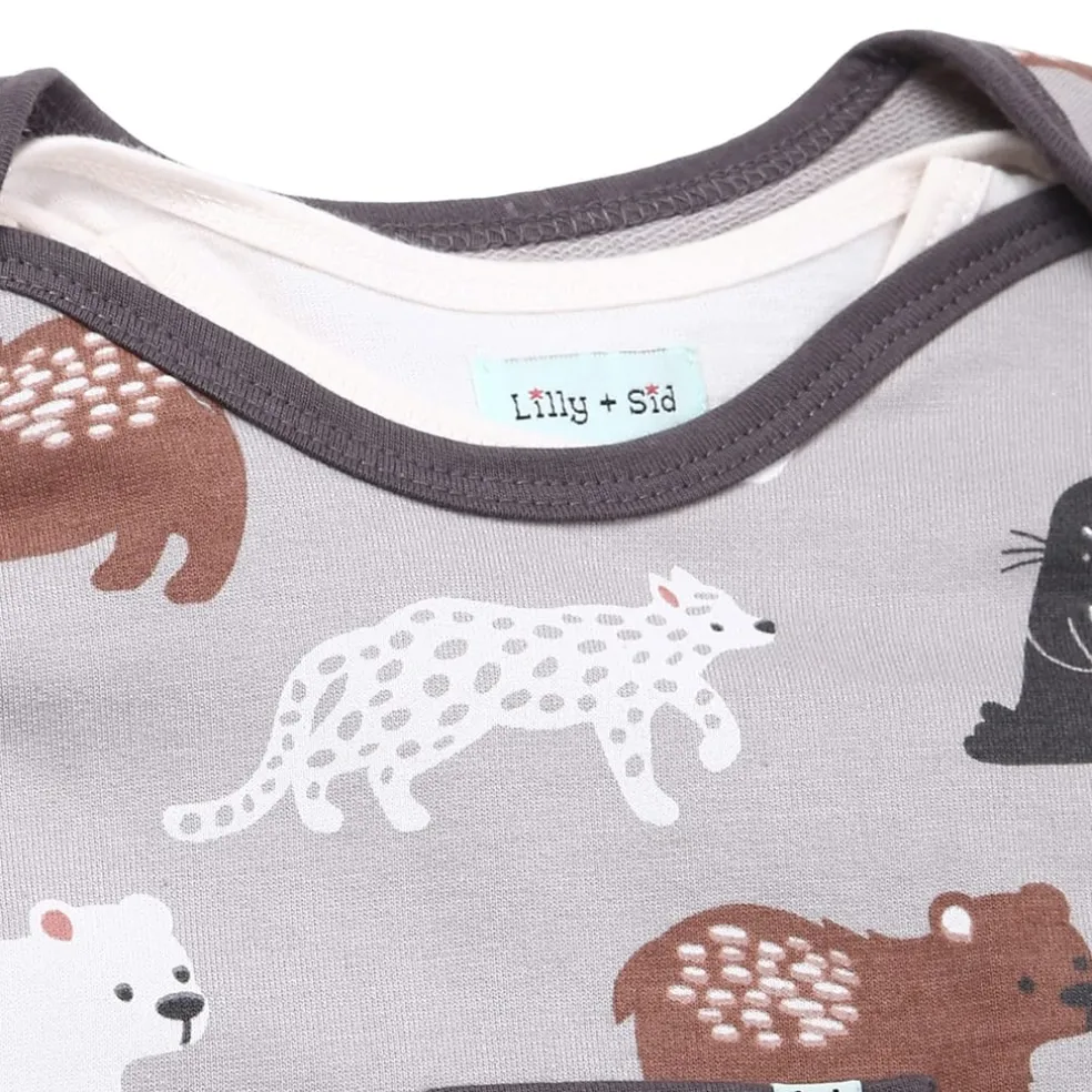 – Made from 100% GOTS organic cotton- Sustainable & eco-friendly- Printed with azo-free dyestuffs- Nickel-free popper fastenings and an envelope neck for easy-peasy dressing- Lilly + Sid logo tab to the hem.