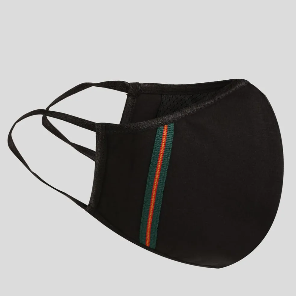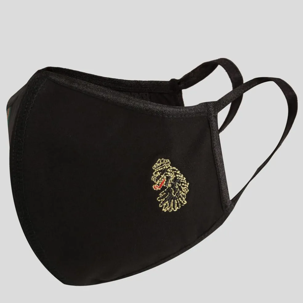 Safe, stylish & comfortable, LUKE’s take on the essential face mask is made using breathable neoprene and inner mesh fabric that stretches with ease. This mask features the brands iconic tri-colour trim tape & black, gold, red lion head embroidery.