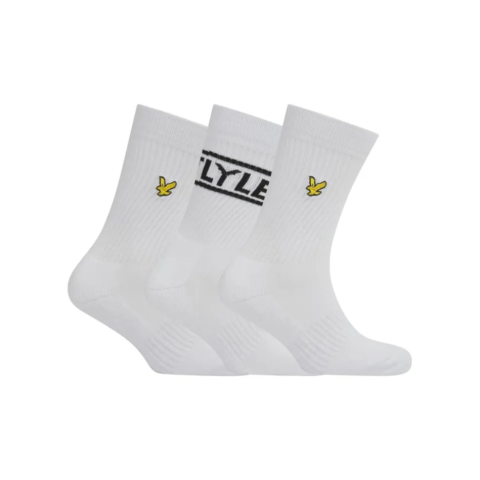 Lyle And Scott 3 Pack Lettering Crew Socks in White