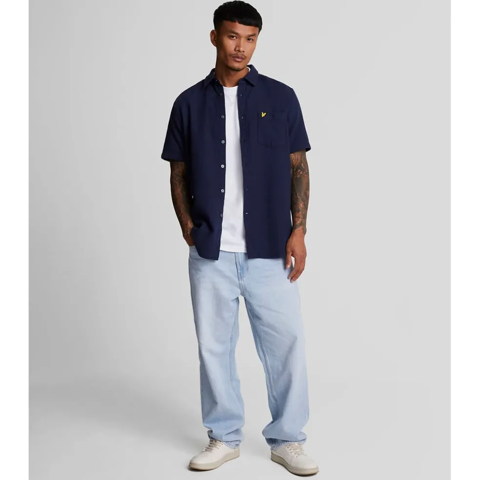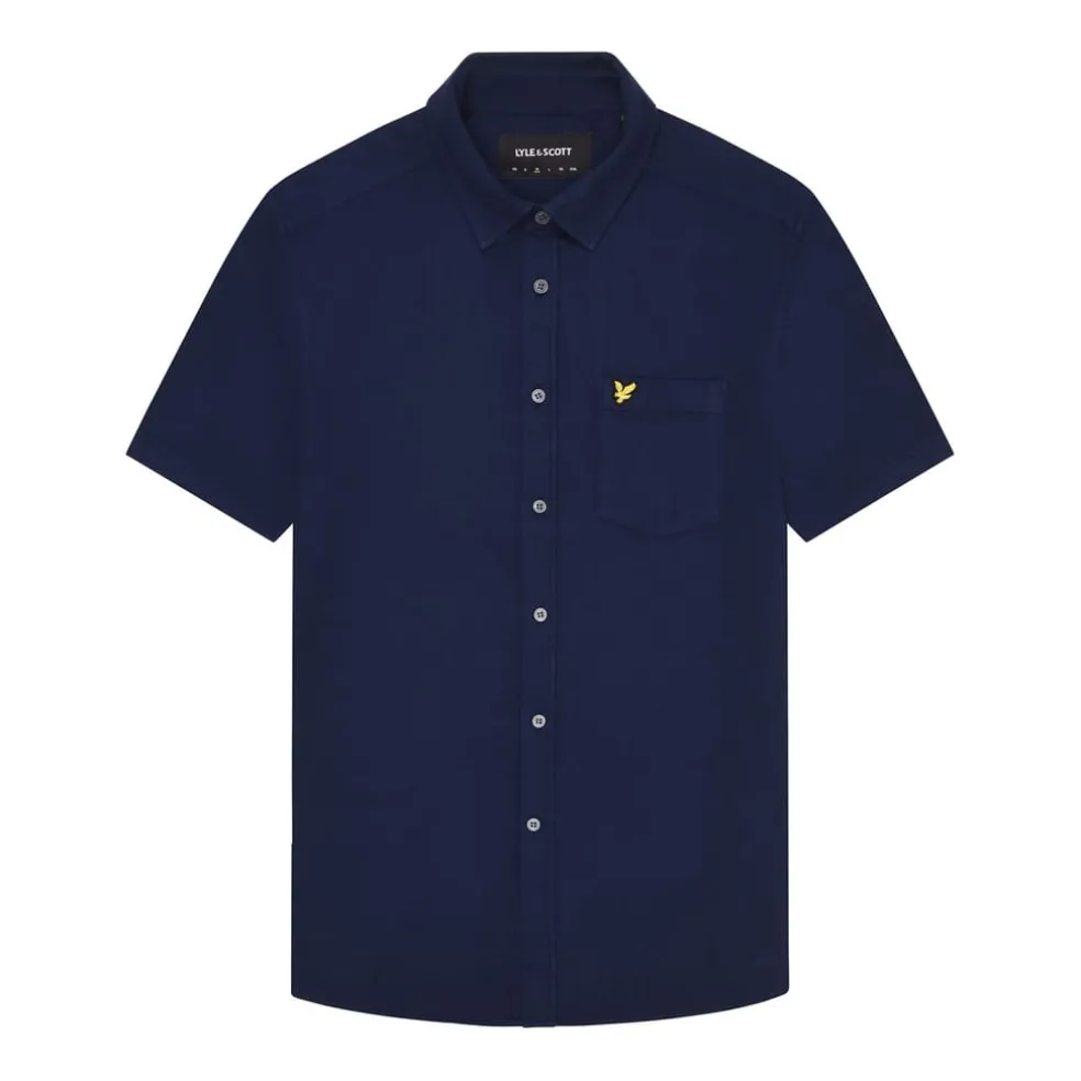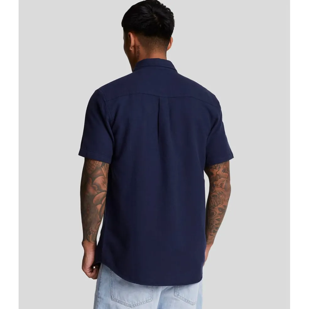 Lyle And Scott Short Sleeve Basket Weave Shirt in Navy