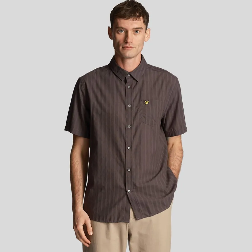 Lyle And Scott Textured Stripe Short Sleeve Shirt in Gunmetal
