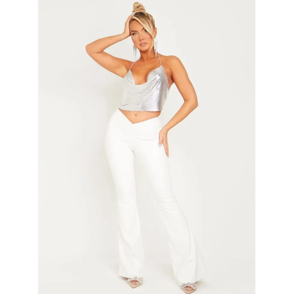 POP OFF GIRL! Our PU Flared Trousers features flared bottoms, finished in a cream PU material. So sexy.