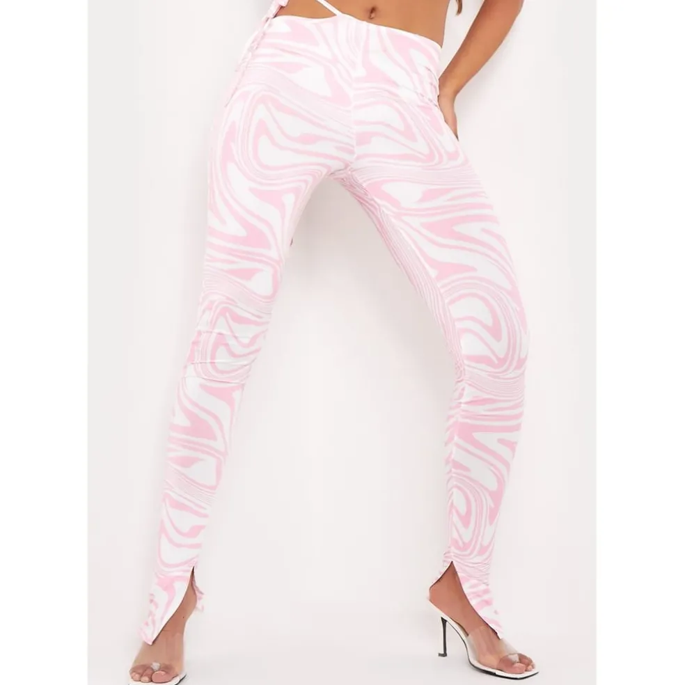 Missy Empire Print Tie Waist Split Hem Trouser in Pink