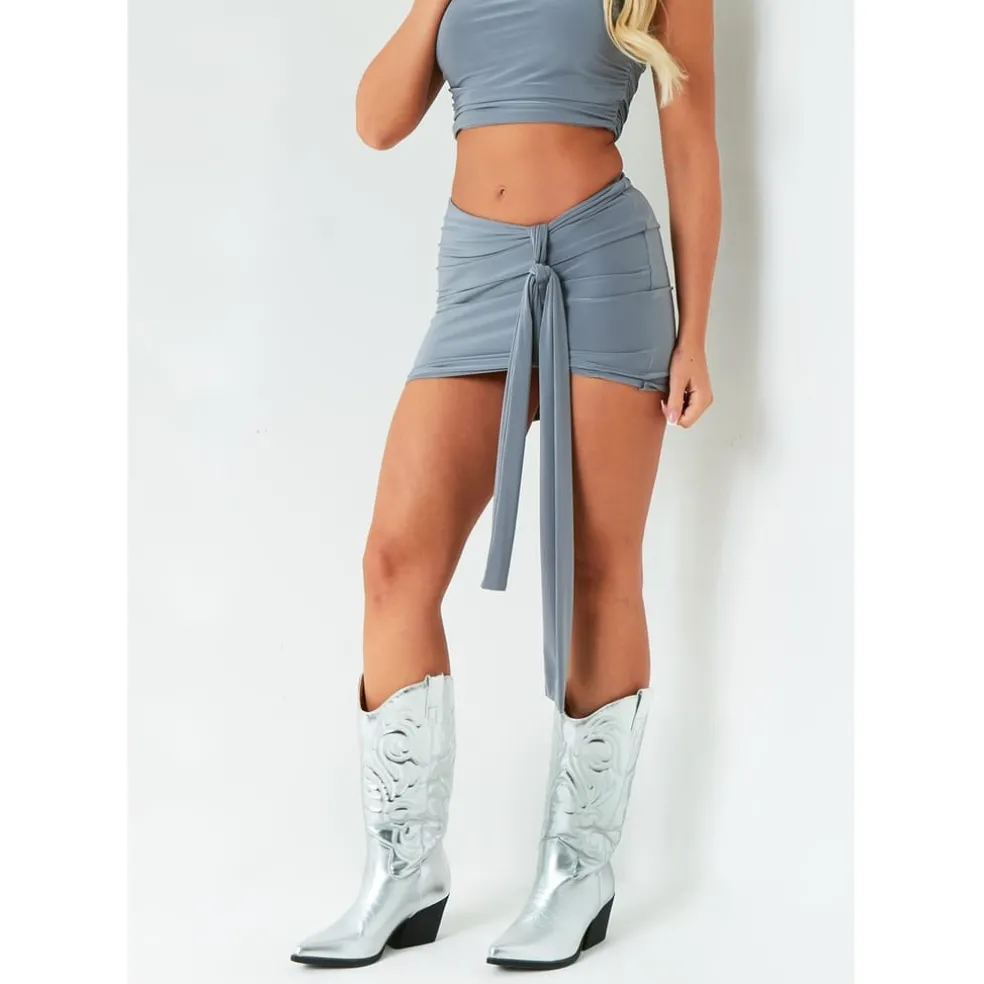 Be the first to review “Missy Empire Tie Front Mini Skirt in Grey” Cancel reply