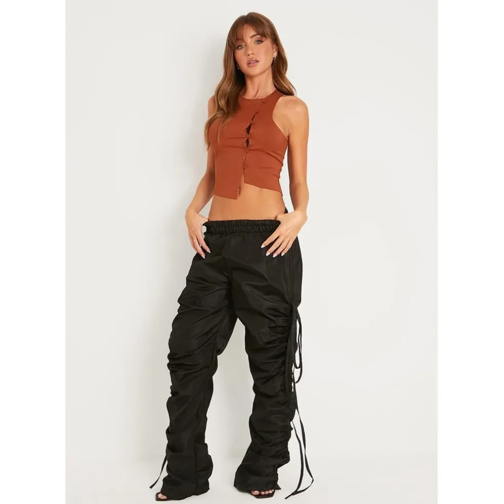 Cool chick in our Ruched Toggle Hem Cargo Trouser, with ruched, toggle detail in an oversized fit. Perfect for them down days with an edgy stylish feel.