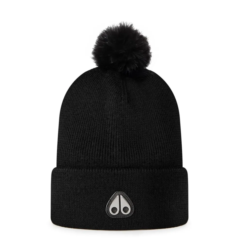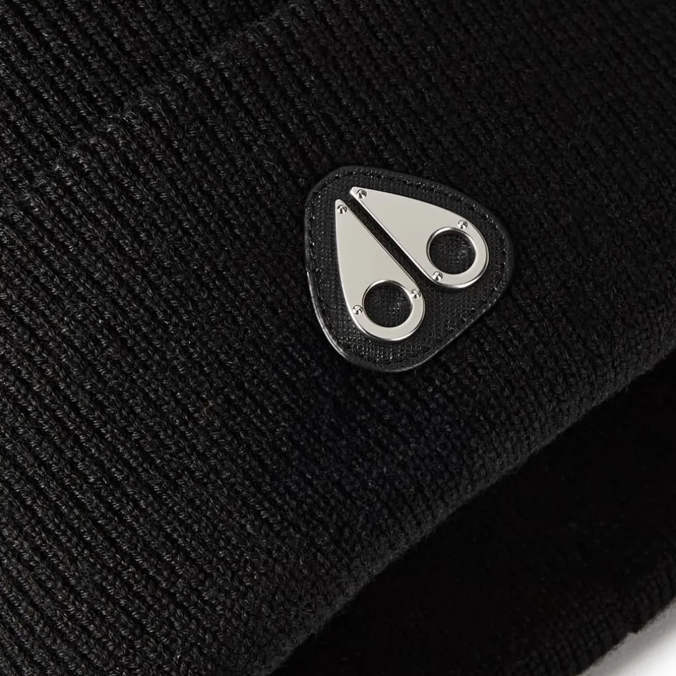 Moose Knuckles Parnis Beanie with Metal Logo in Black