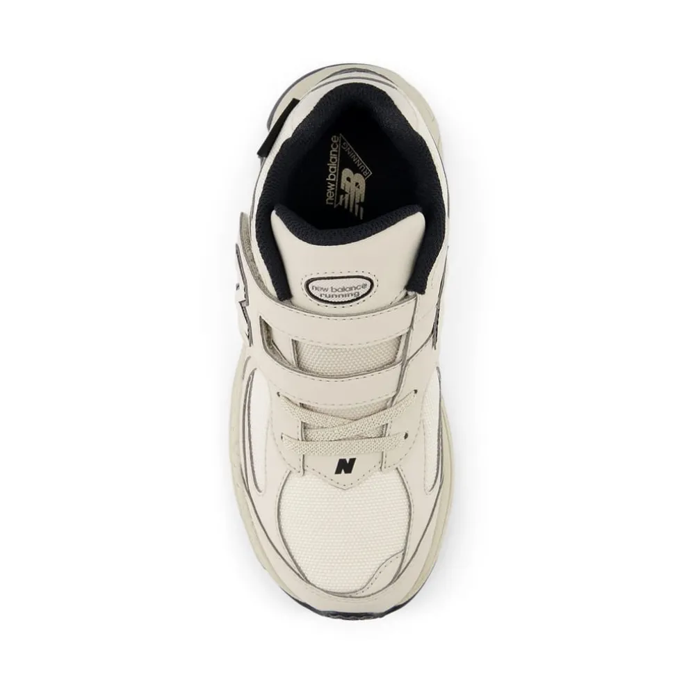 Junior New Balance 2002 Hook and Loop Trainers in timberwolf / black.