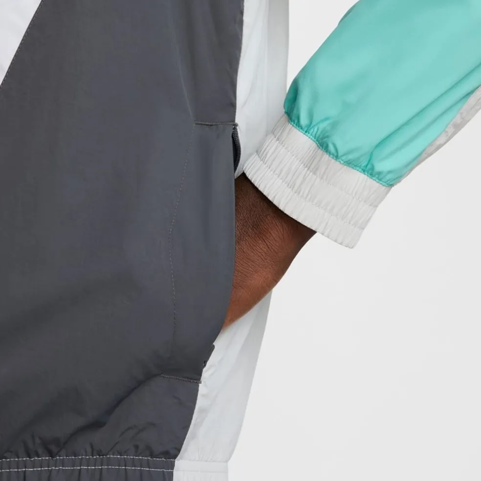 Nike athletic sweatshirt is designed for track enthusiasts. This top features a mock neck with a high collar and a convenient zipper closure. The long raglan sleeves and ribbed cuffs ensure a comfortable regular fit. The color block pattern adds style, while the logo embellishment showcases brand identity.