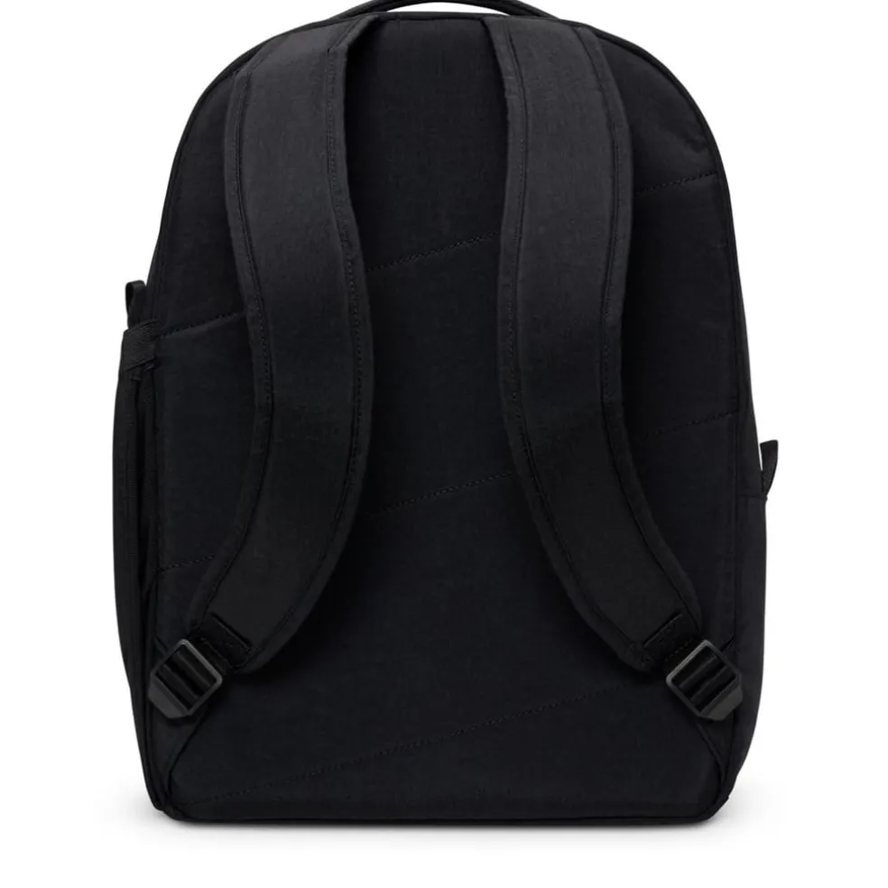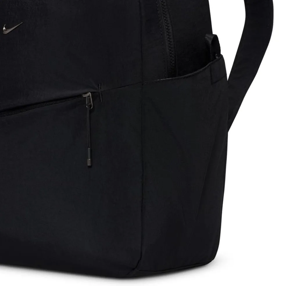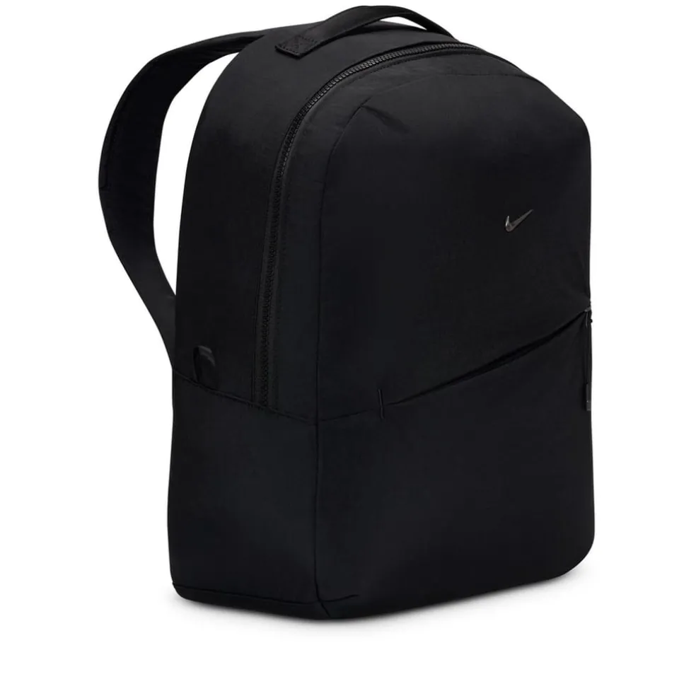 The Nike Aura backpack is a stylish and functional choice for carrying essentials. Featuring a secure zipper closure and a convenient top handle, this backpack ensures easy access and comfortable carrying. The design is enhanced with a prominent logo and a practical zipped pocket, making it both fashionable and practical for everyday use.
