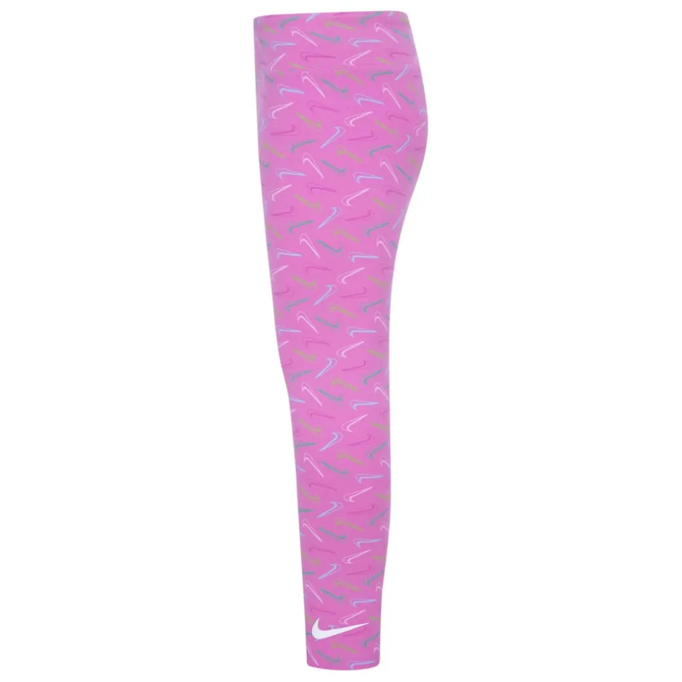 Elasticated waistband.Dynamic Design: Embellished with a trendy swoosh logo, these leggings manifest style with a playful twist.High-quality Material: Crafted from premium fabric, they offer ultimate comfort for all her daily activities, making it a must-have for her collection.Vibrant Shade: The eye-catching pink colour encapsulates femininity and liveliness, imparting a sassy edge.