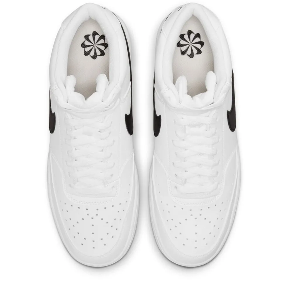 – With iconic Nike Swooshes on the sides and Nike logos on the heels, this pair symbolise style and quality. Finished with discreet tone-on-tone topstitching, these Nike Court Vision Mid Next Nature