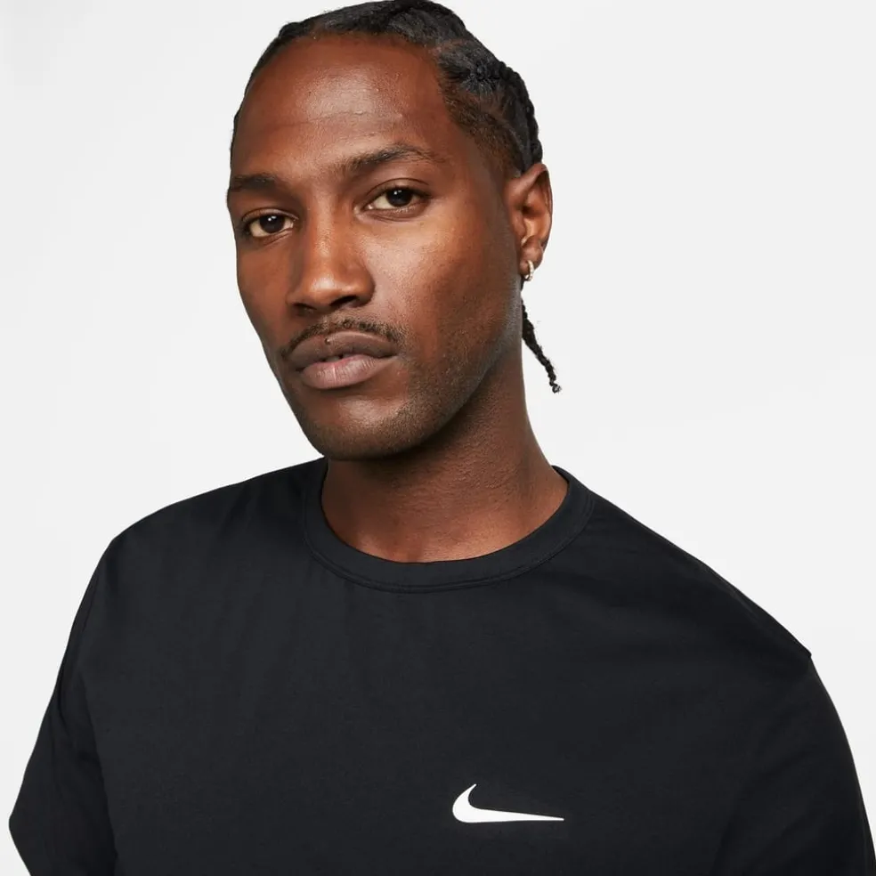 The Nike Dri-FIT UV Hyverse Men’s Short-Sleeve Fitness Top is a great addition to any training wardrobe, featuring a lightweight fabrication coupled with a crew neck collar and short sleeves that ensures all day comfort. Dri-Fit technology helps wick sweat away from the skin to keep you feeling dry and focused, a solid colouring along with the classic Nike Swoosh branding to the chest completes the look. Machine washable, follow care label instructions.