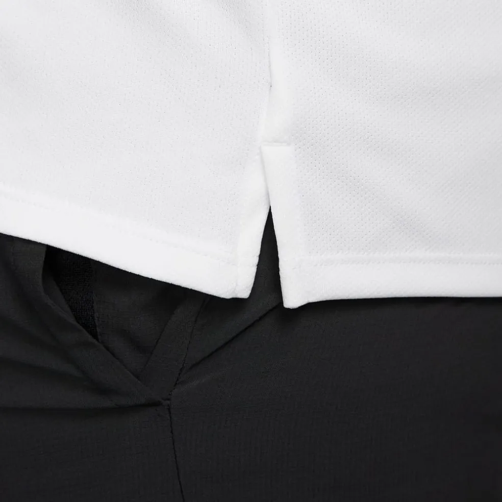This Nike DriFit Miler Running Top has been designed to provide a comfortable wear when running. The design features a crew neck, short sleeves and lightweight fabric that is breathable, while DriFit technology moves sweat away from the skin for a lighter fresher feel. The shirt has flat lock seams to reduce irritation and is completed with reflective details plus the classic Nike Swoosh for an instant sports vibe. Please note: The style you receive may vary from the image shown.