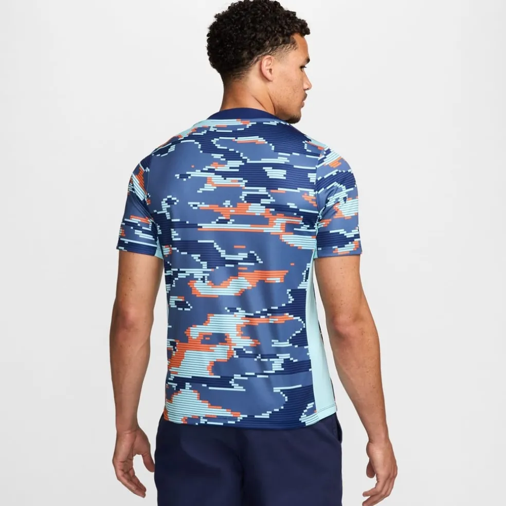 – Designed with a vibrant all-over graphic pattern, adorned with touches of the country’s signature orange, this training shirt embodies the strong spirit of the Netherlands. The slim and streamlined fit, combined with moisture-wicking technology, ensures that you stay cool when the training heats up. Say goodbye to discomfort caused by sweat as the Nike Dri-FIT technology swiftly moves moisture away from your skin, keeping you dry and comfortable at all times.