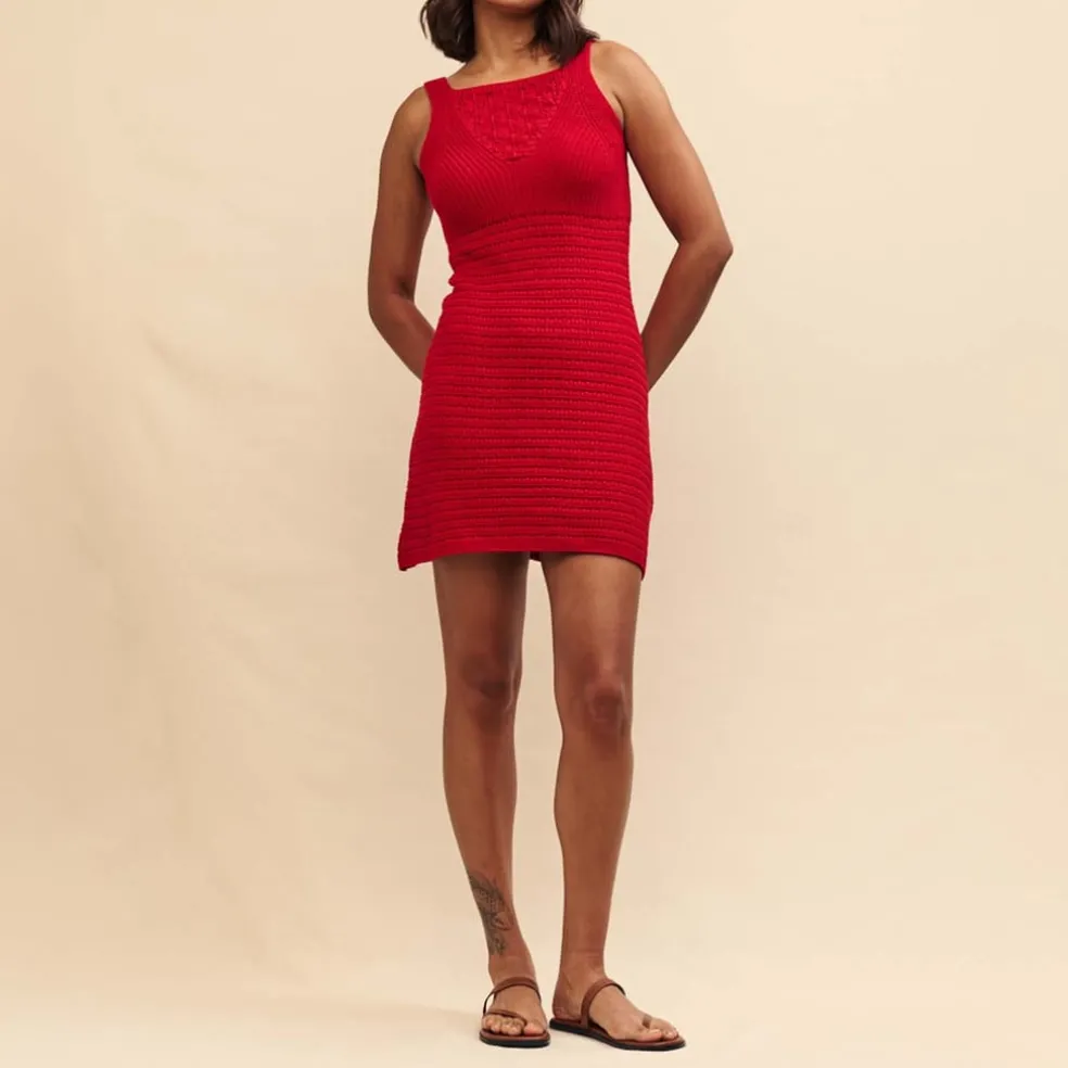 Nobodys Child Mock Crochet Mini Dress in Red