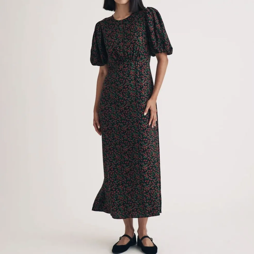 “A new take on Tallulah. Decorated in a red cherry print, we think she’s just what your wardrobe’s always wanted. Style yours with so-now Mary Jane shoes.Round neckMid-length puff sleevesCurved waist seamConcealed zip fasteningRelaxed skirt that skims the body”