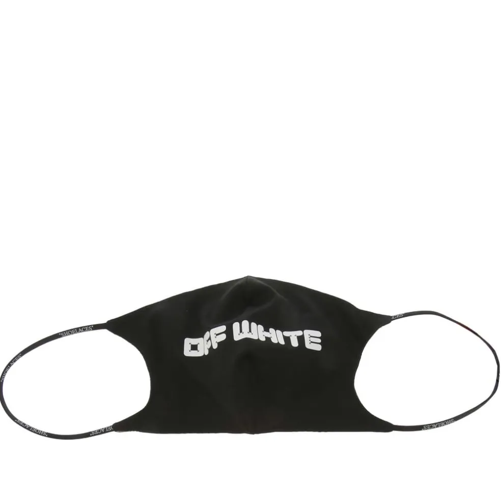 – Black cotton face covering with Off-White graphic to front.