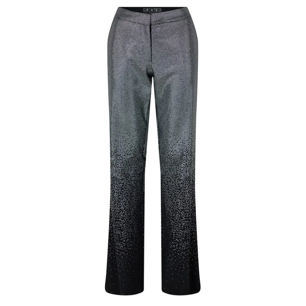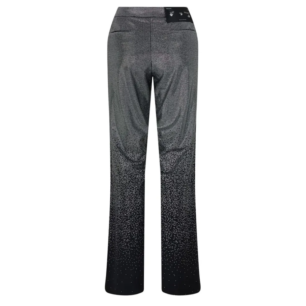 Off White Crystal Embellished Flared Leg Trousers in Black