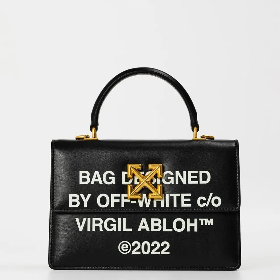 Discover the Off White handbag, featuring a striking graphic print and a distinctive logo embellishment. This bag is designed with a practical flap closure and a convenient top handle, making it both stylish and functional for your daily needs.
