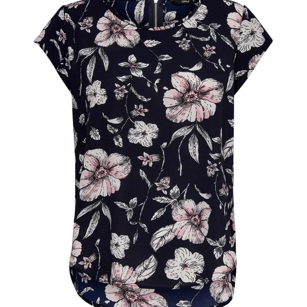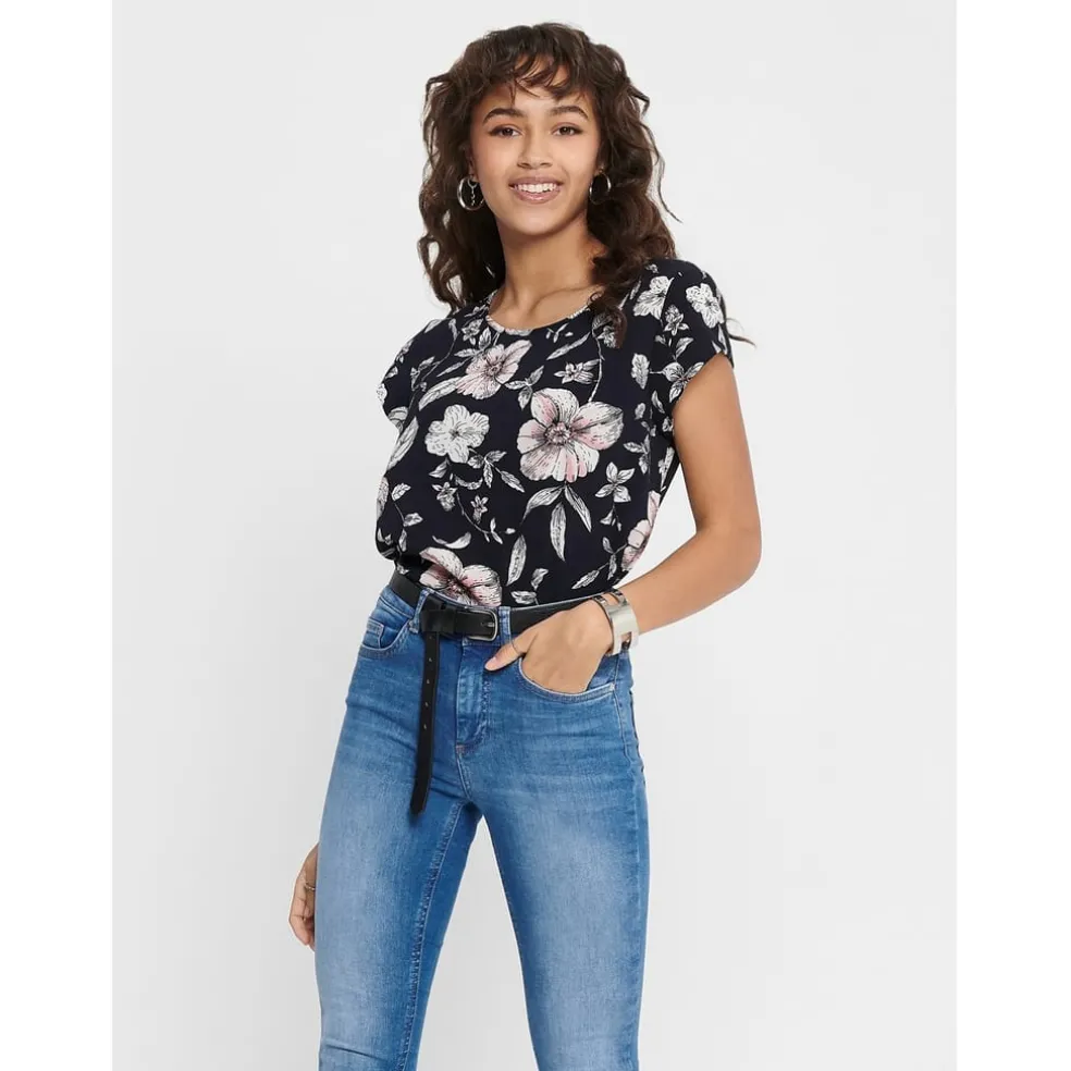 This Only Vic blouse is a stylish addition to your wardrobe. Featuring a crew neck and cap sleeves, it offers a comfortable regular fit. The floral pattern adds a touch of femininity to this short-sleeve top, perfect for various occasions.