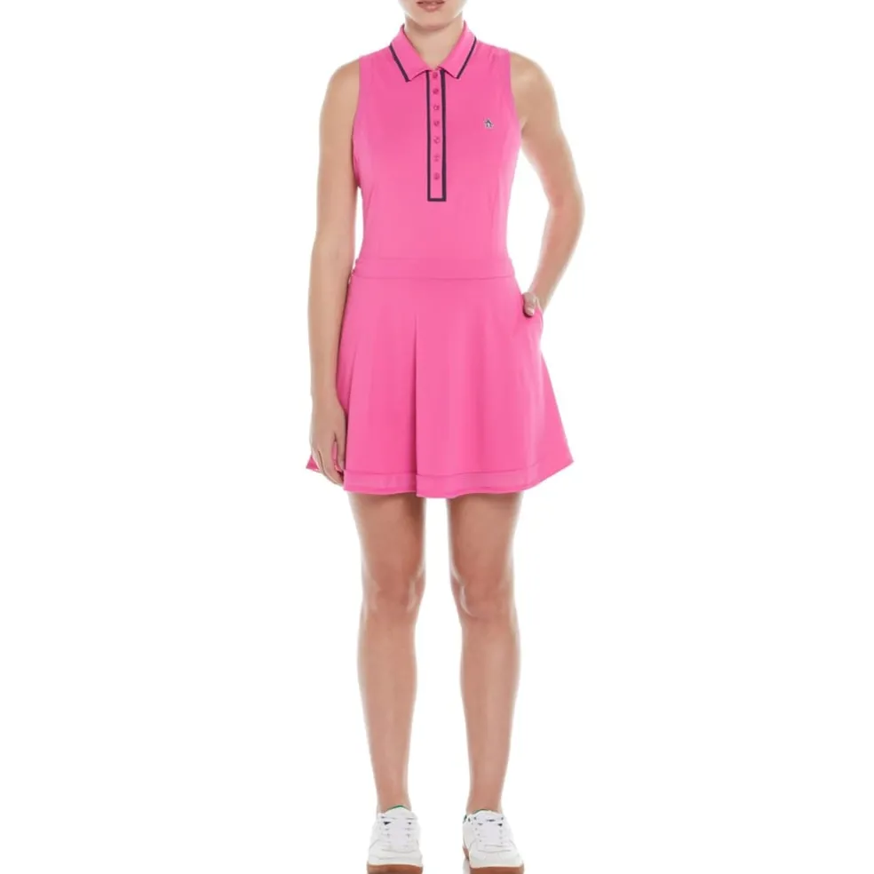 Original Penguin Golf Collared Neck Mini Skater Dress in Pink