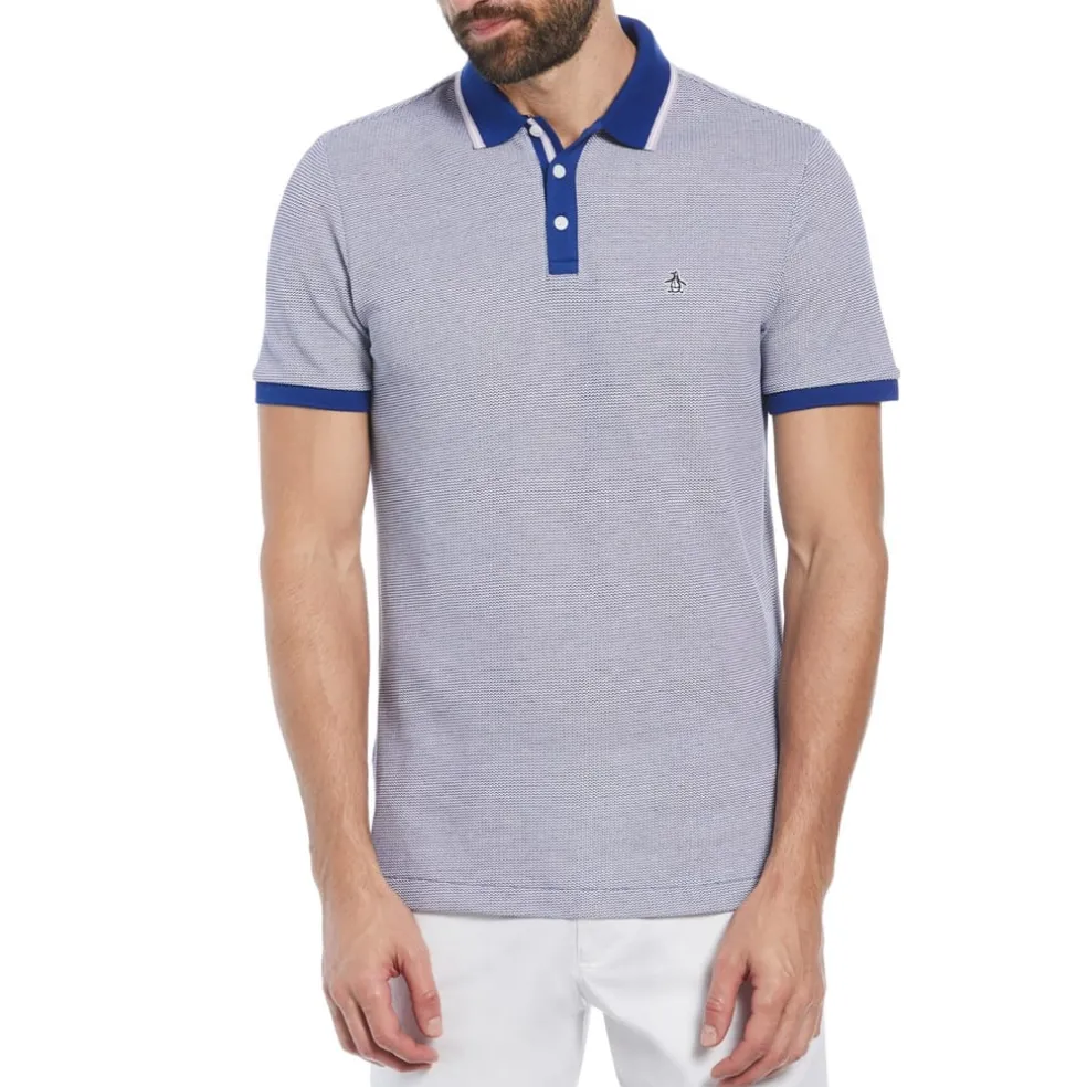 Refresh your collection with this Original Penguin Jacquard Polo. Constructed from a soft cotton and polyester blend with a folded collar and two button placket for a stylish look, this shirt then also features short sleeves and ribbed trims. This polo is then completed with the signature Original Penguin branding embroidery to the chest.
