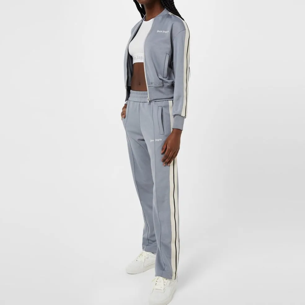 – With side stripe detailing and the iconic logo embroidered at the hip, these trousers exude a sense of exclusivity and contemporary elegance. Dress them down for a casual outing or pair them with the Bomber Track Jacket from