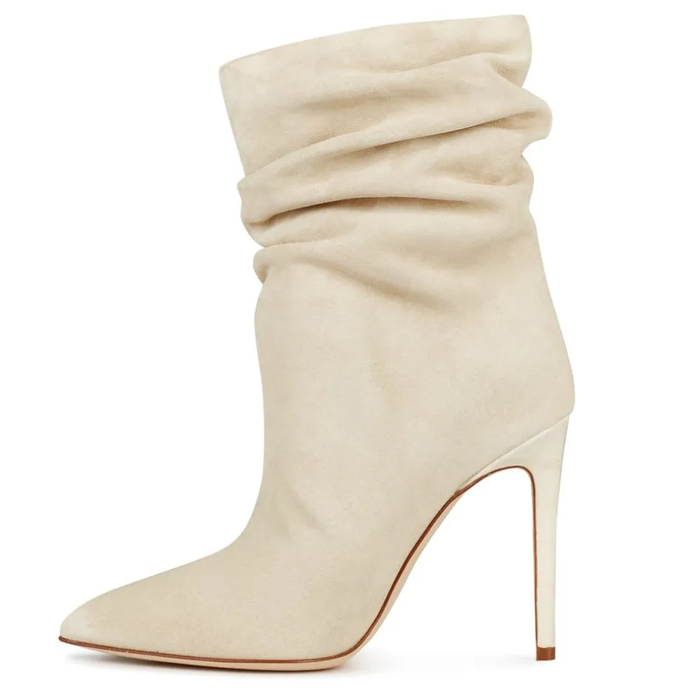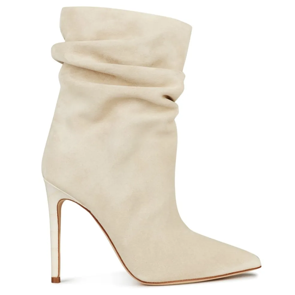 Paris Texas Slouchy Ankle Stiletto Heel Boots in Beige