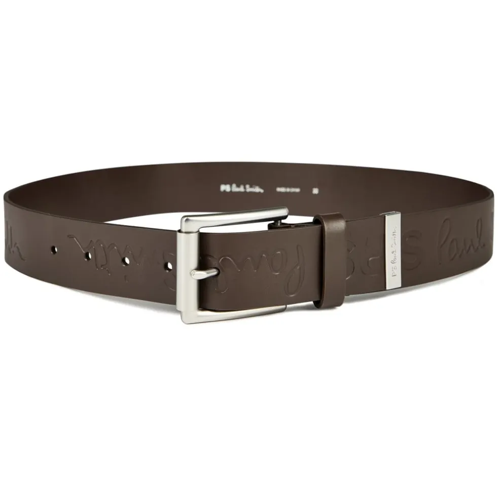 Perfect for adding a finishing touch to your attire, this sleek silhouette has been crafted from a smooth black leather while the embossed Paul Smith script logo adds a subtle designer stamp. Offering an adjustable buckle fastening for a personalised fit, this belt is perfect for adding a smart touch to your workwear.