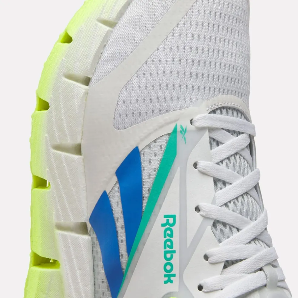 – Engineered mesh upper with reflective overlays.