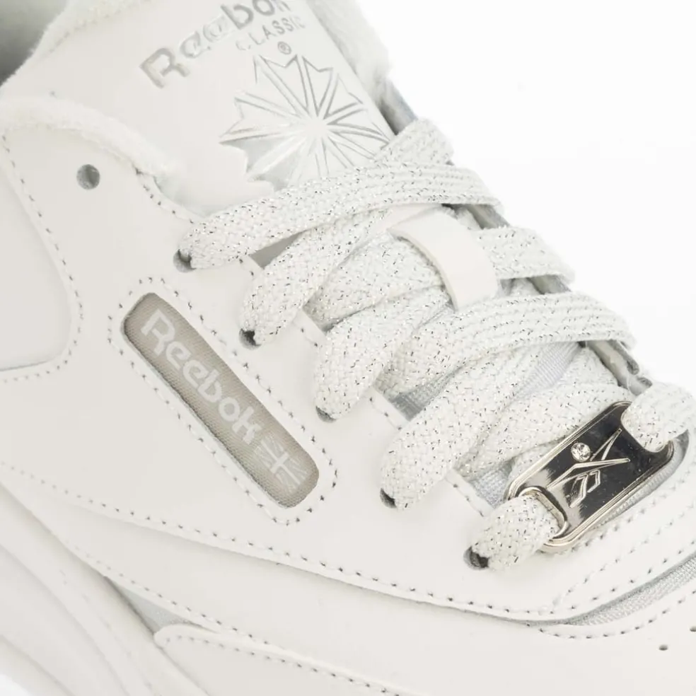 – Leather upper with textile pops.