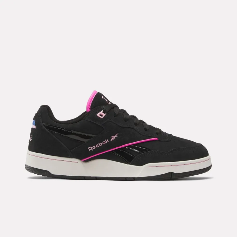 – Embellished with patent leather side stripes and shiny mesh details.