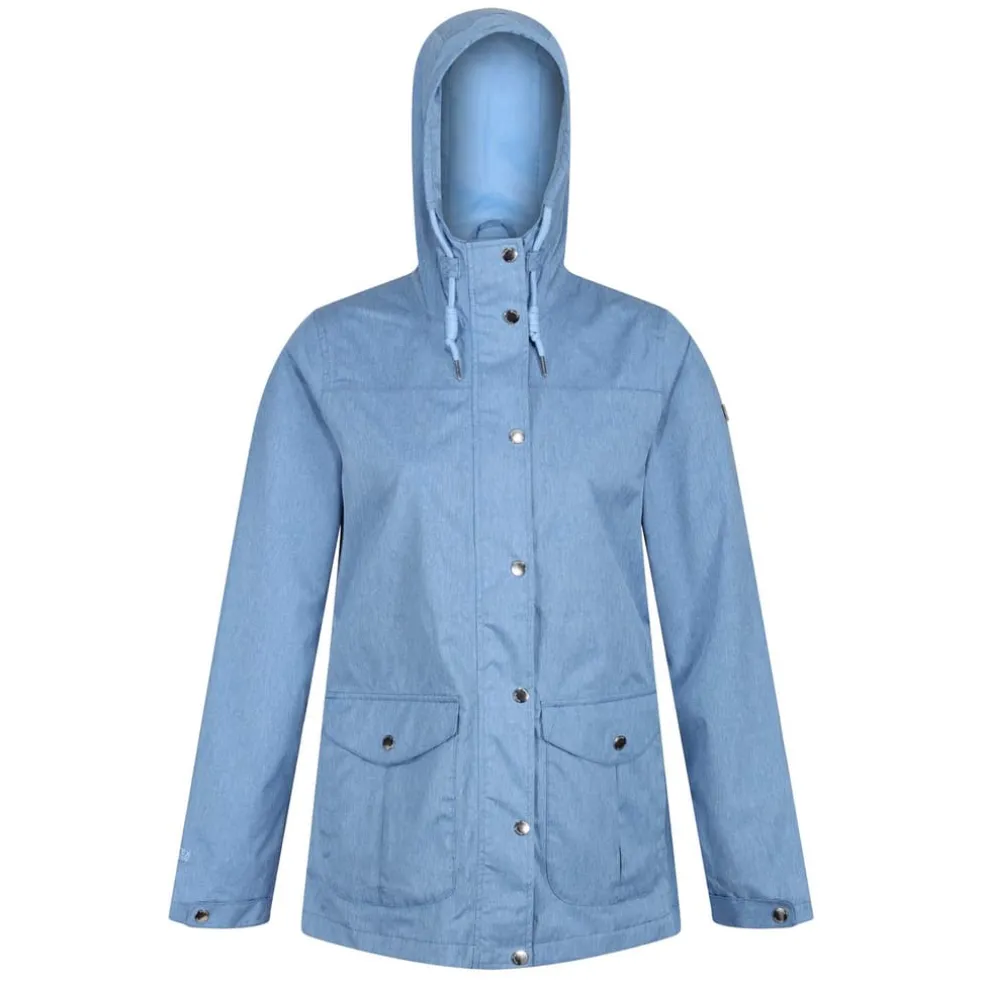 The Bayarma women’s jacket from Regatta is just the perfect style. The women’s waterproof and breathable jacket features taped seams for great protection from the rain. The women’s jacket is ideal for evening walks. The adjustable cuffs and drawcord detail hood will keep you dry at all times.