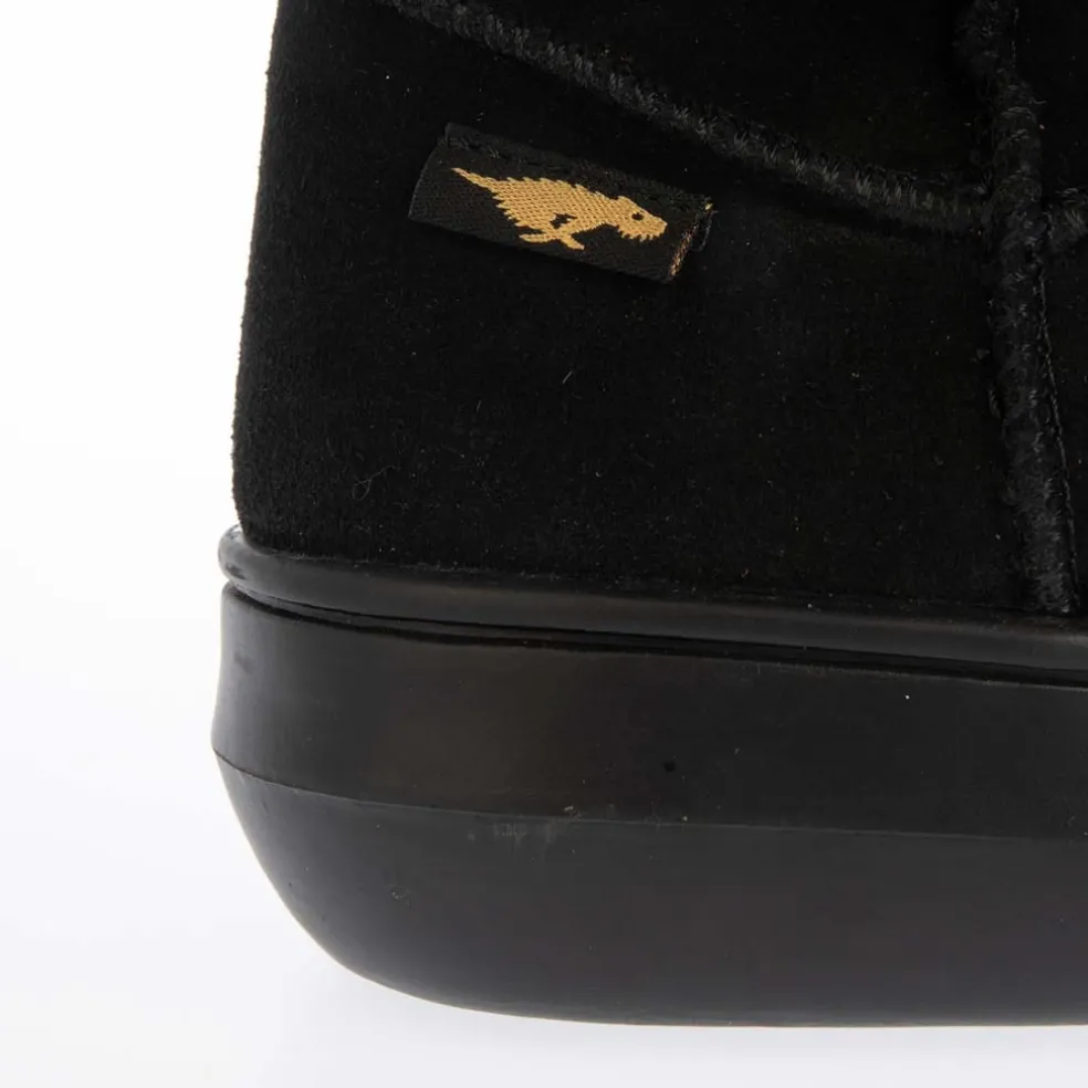 Rocket Dog Sugar Daddy Suede Winter Boots in black. The favourite ‘Sugar Daddy’ boot is ideal for wintery weather with warm faux sheepskin lining. Grab your pair now and cosy up this winter. Suede upper, textile lining, Synthetic sole.