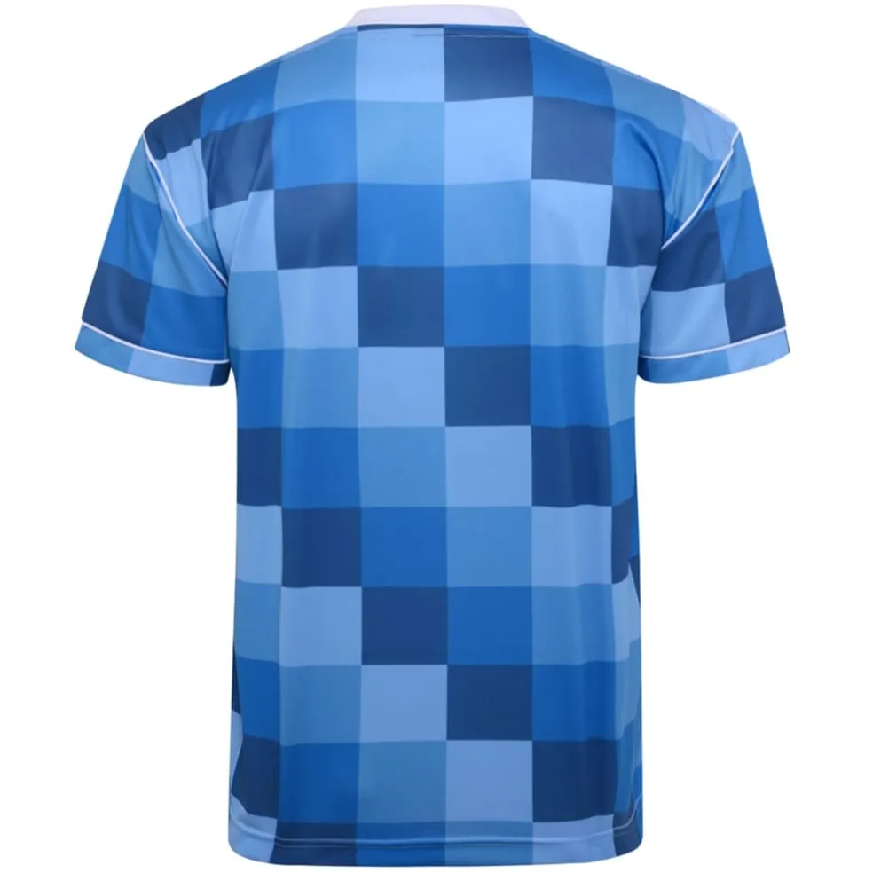Worn by players of the time such as John Gregory and Dean Saunders, the Derby Count Away Shirt is in rotation after the 1988 season. Crafted from a lightweight polyester fabrication, this supporters essential is characterised with a mix-match tonal blue pattern repeated all-over giving your collection a vintage appeal. Styled with a button placket to the rounded neckline framed by short sleeves, cheer on from the sidelines or style daily to show your support for Derby County. Complete with the team crest and Umbro logo, this shirt is one to add to the collection. Composition: Polyester. Machine wash.