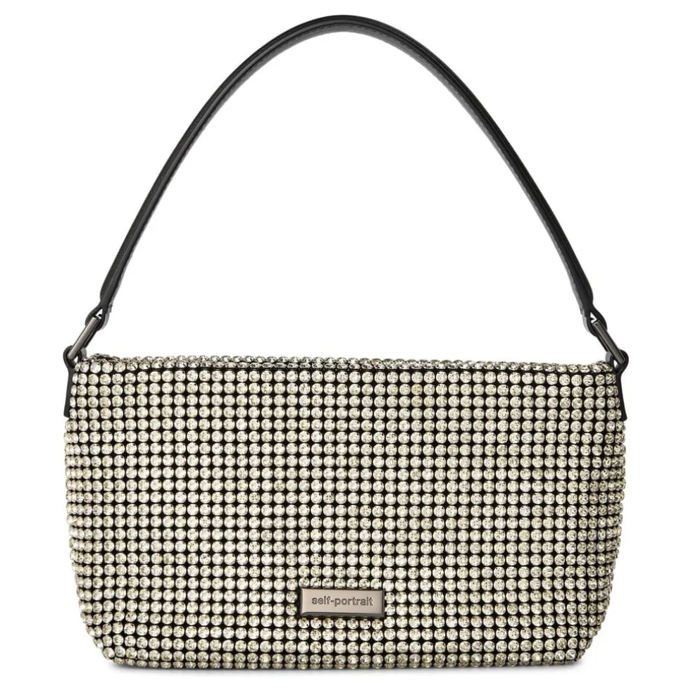 Discover the Self Portrait hobo bag, a stylish accessory featuring a zipper closure for secure storage. This elegant piece is adorned with rhinestones, adding a touch of glamour. Designed with a comfortable shoulder handle, it offers both functionality and fashion, making it a perfect addition to your collection.