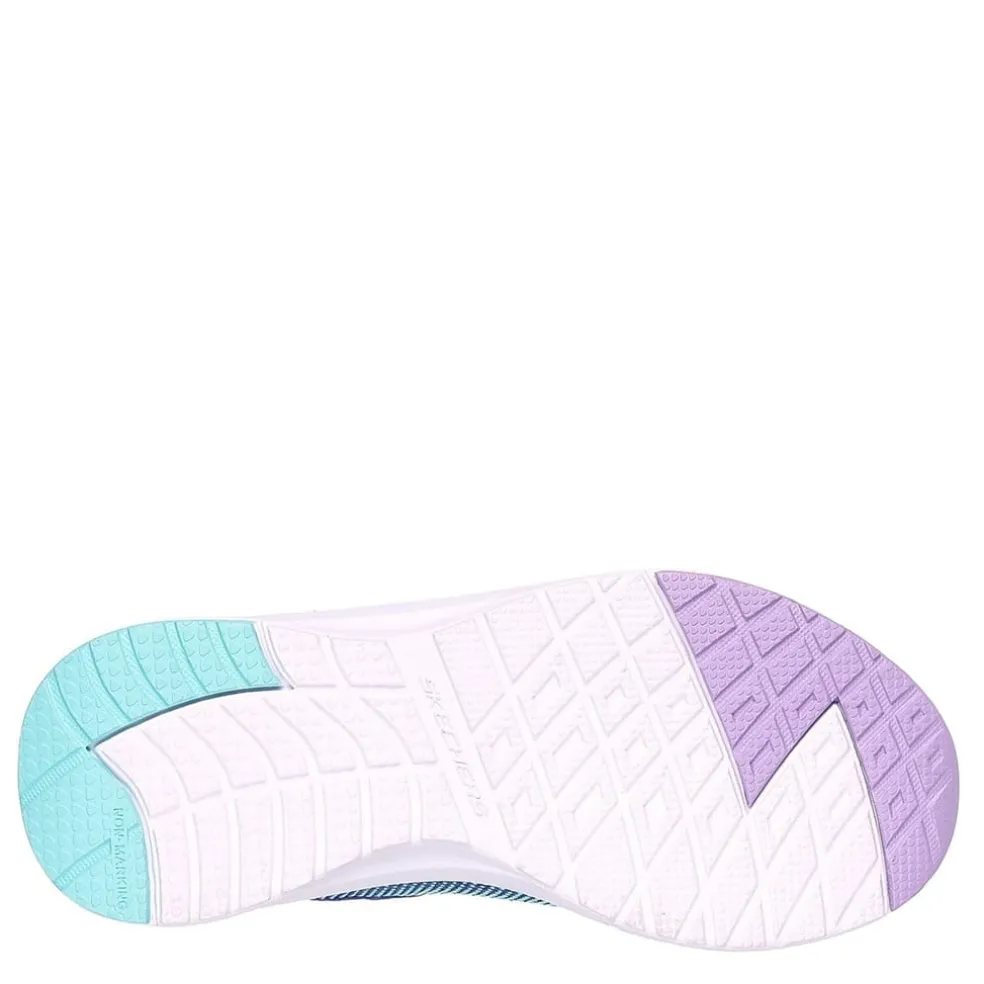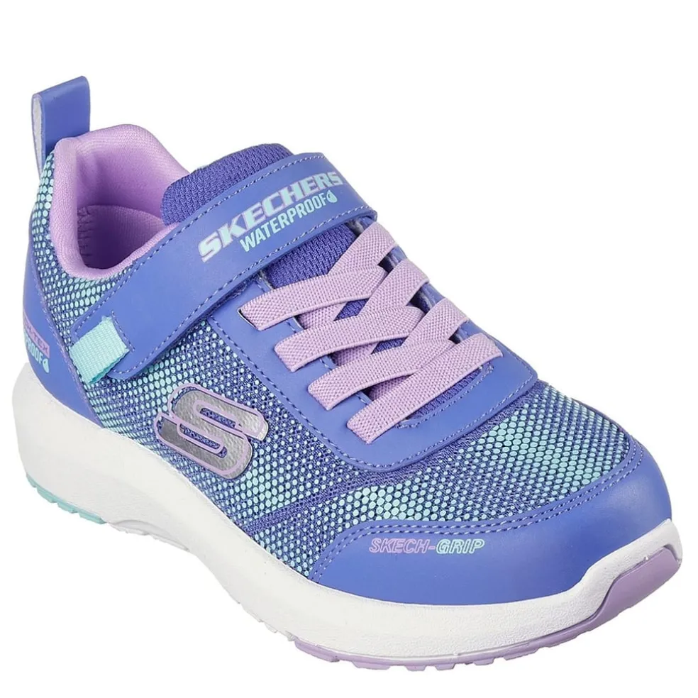 Colorful style and sporty comfort is ready rain or shine with Skechers Dynamic Tread – Journey Time. This waterproof active design features an iridescent mesh and synthetic upper with stretch laces, adjustable instep strap, and flexible rubber traction outsole.